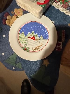 Winter scene plate (cabin/snow landscape)