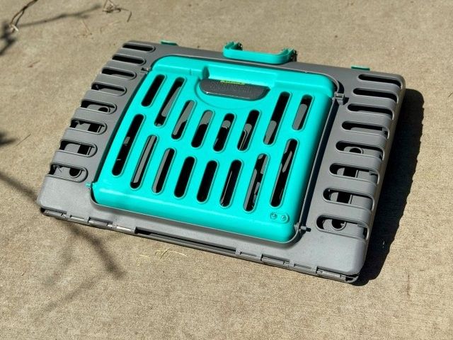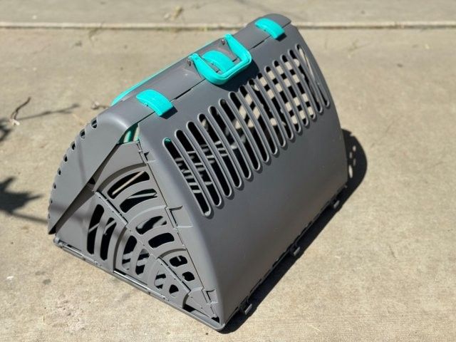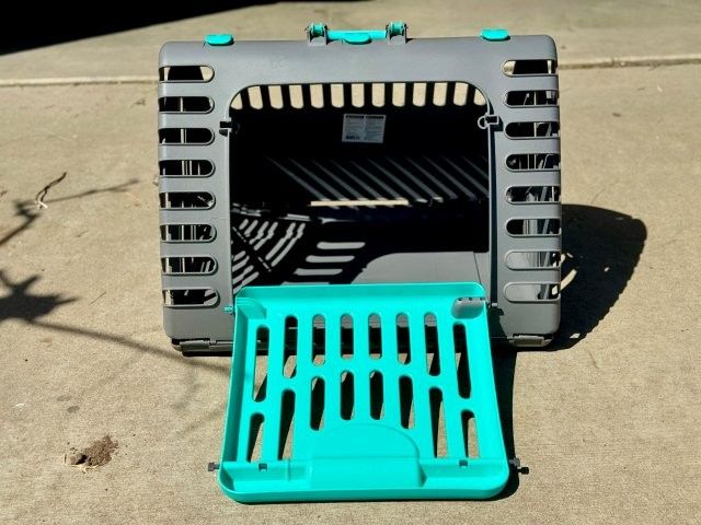 The SportPet Foldable Carrier is a smart, space-saving solution for pets on the go. Measuring 23.5" x 17" x 18", this durable crate fits cats and small dogs comfortably while featuring a unique design that folds completely flat for easy storage. With its wide front door and ventilated sides, it provides a secure and breezy environment for stress-free travel.