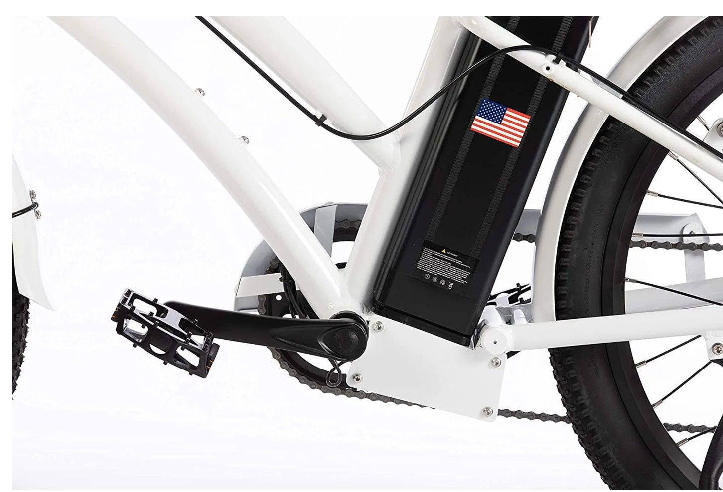 Battery: Removable anti-theft battery (you can bring it to your home to recharge); 48V13AH Lithium Battery (Range: 55--65 miles @ 8mph on a flat surface, + 25-30% in “eco” mode)