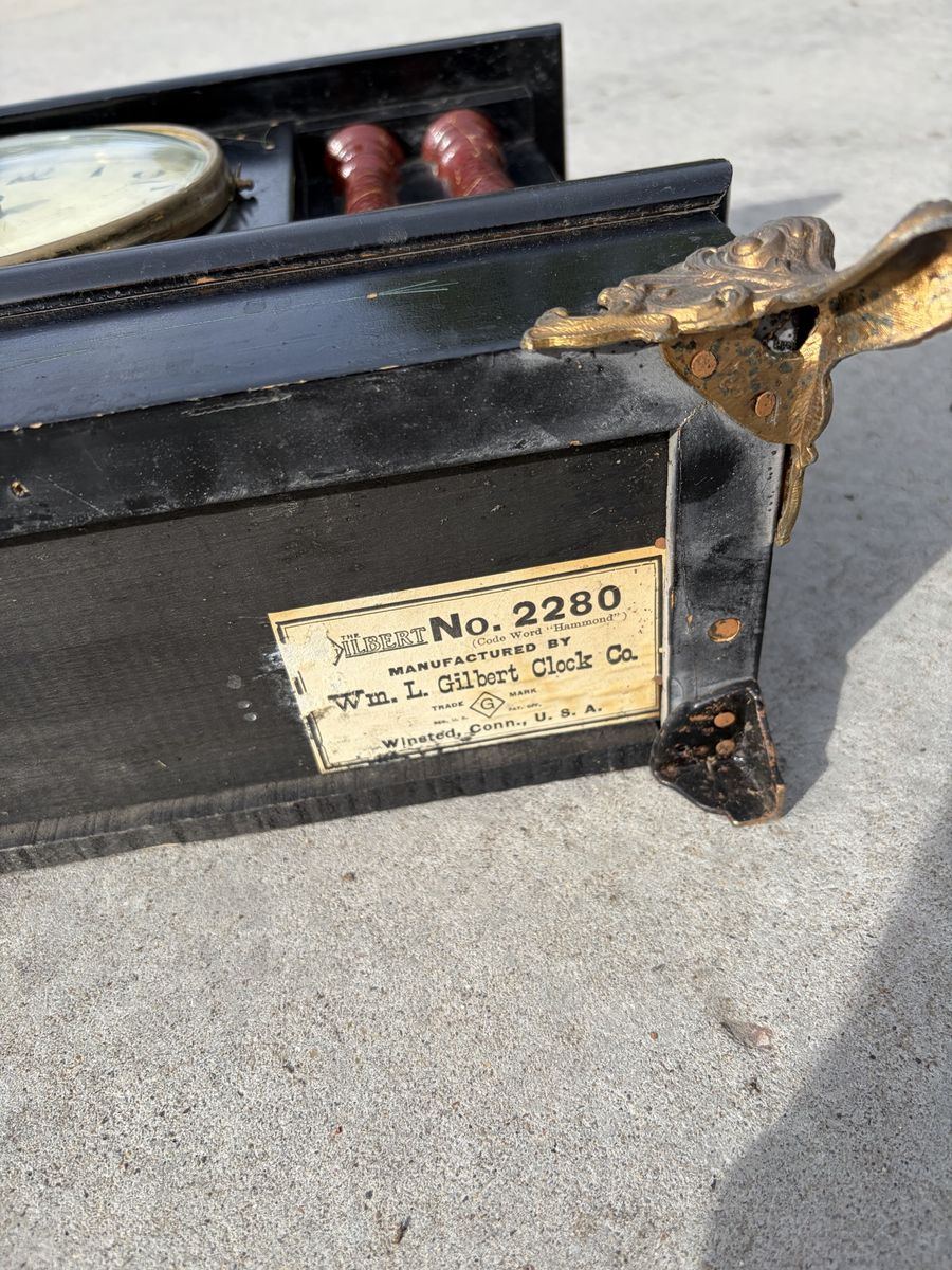 VenmoWilliam L. Gilbert Clock #2280. Not sure of age. Approximately 100 years old. My my great grandmother’s. Front glass is cracked and the hinge is broken.