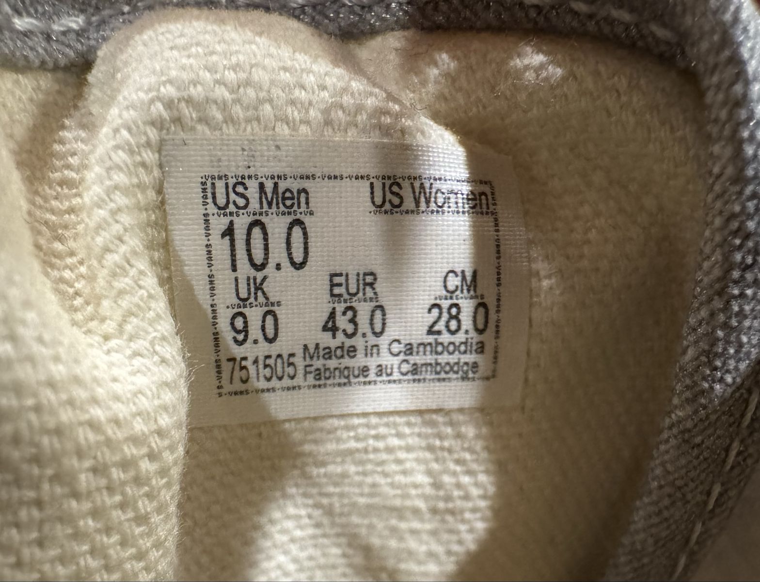 ZelleSize 10 men’s gray vans. These have a slight sparkle to them which is interesting. I don’t wear them because they’re slightly too small for me