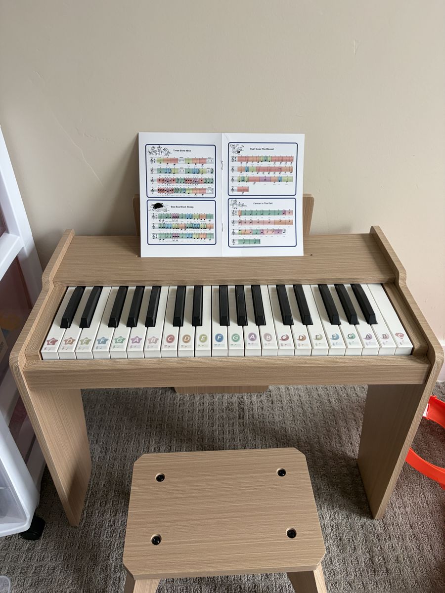 VenmoExcellent like new condition. Bought it for my son but he barely used it. Everything works perfectly. Retails new for $139 on Amazon. Comes with music book and stool. Please elt me know if you have any questions.