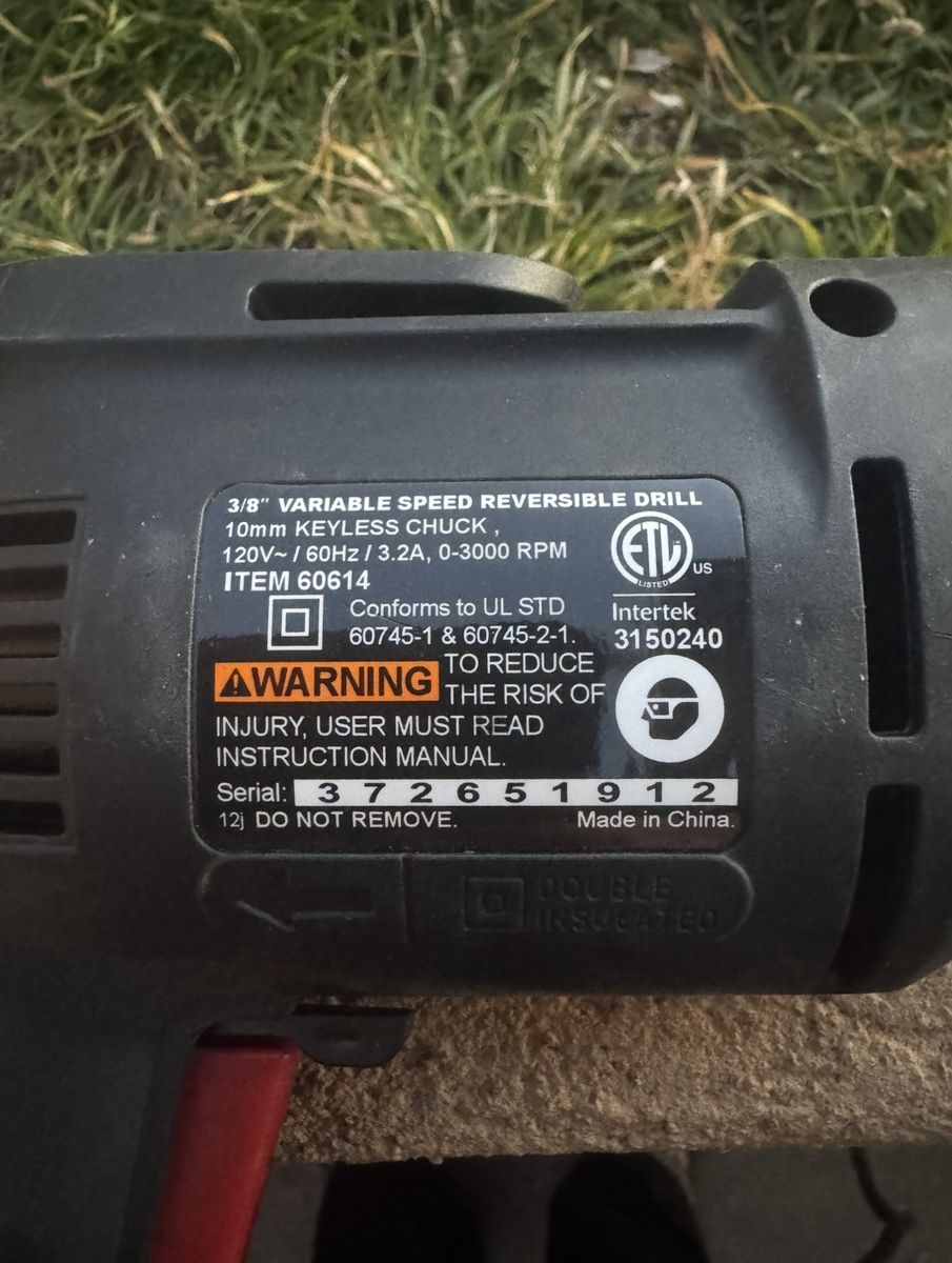 Drill Master Black 60614 3.2 Amp 3/8 In. Variable Speed reversible drill, works fine $30 Accept only in cash