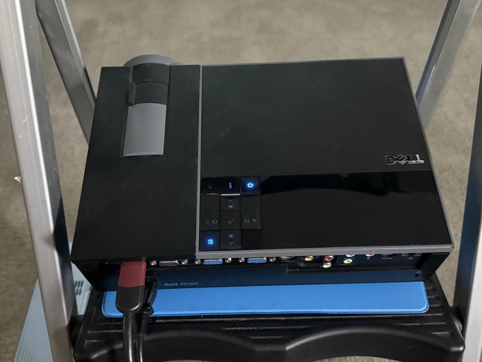 PayPalFunctional Dell 1510X projector has 385 lamp hours used. This black and silver unit comes with original remote control and power cable. It has multiple input ports including VGA and HDMI. Image is bright and clear with adjustable focus and zoom. Works well and would make a great indoor/outdoor movie projector this summer! Price is OBO. I have some other projectors for sale if this one doesn’t fit the bill. Just ask!