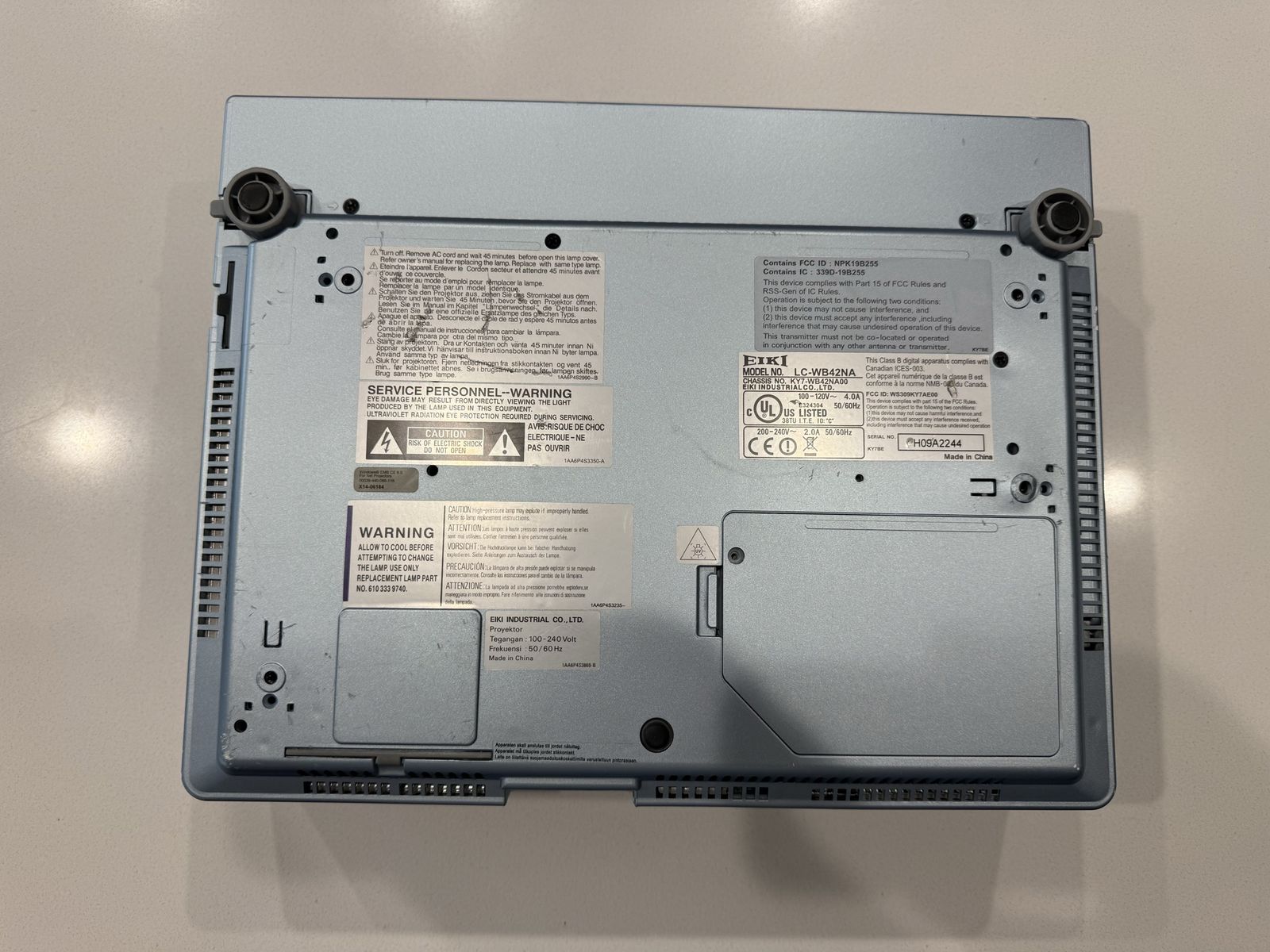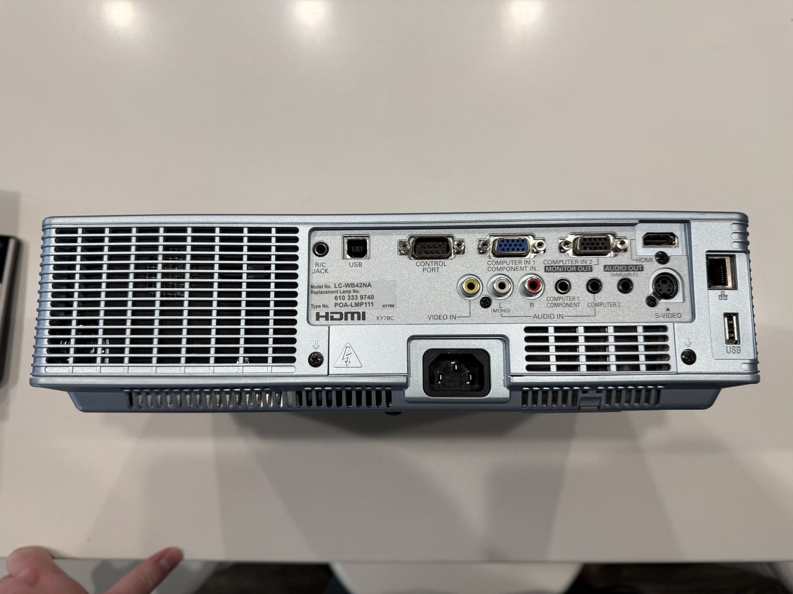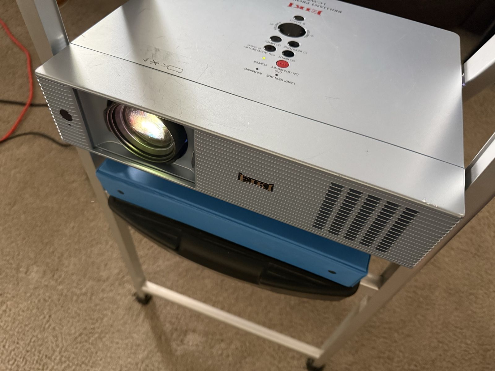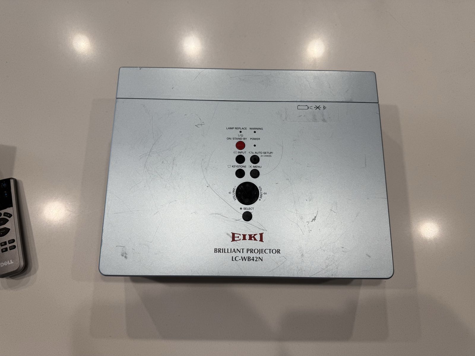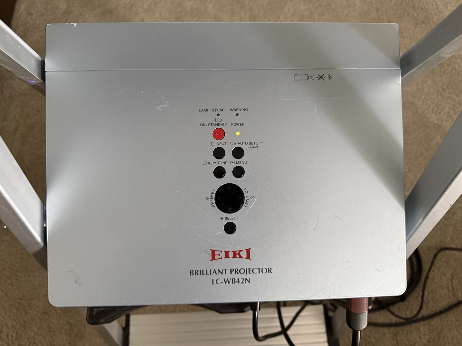 PayPalFunctional Eiki projector has silver casing and multiple input ports including VGA and HDMI. Unit has a brand new lamp with minimal lamp hours shown on the menu screen. It has top-mounted control buttons and manual focus ring around lens. Body has some light surface scratches from normal use. Comes with power cord. Would make a good indoor/outdoor movie projector. Price is OBO. I have other projectors for sale if this one doesn’t fit the bill. Just ask!