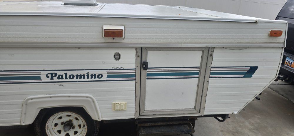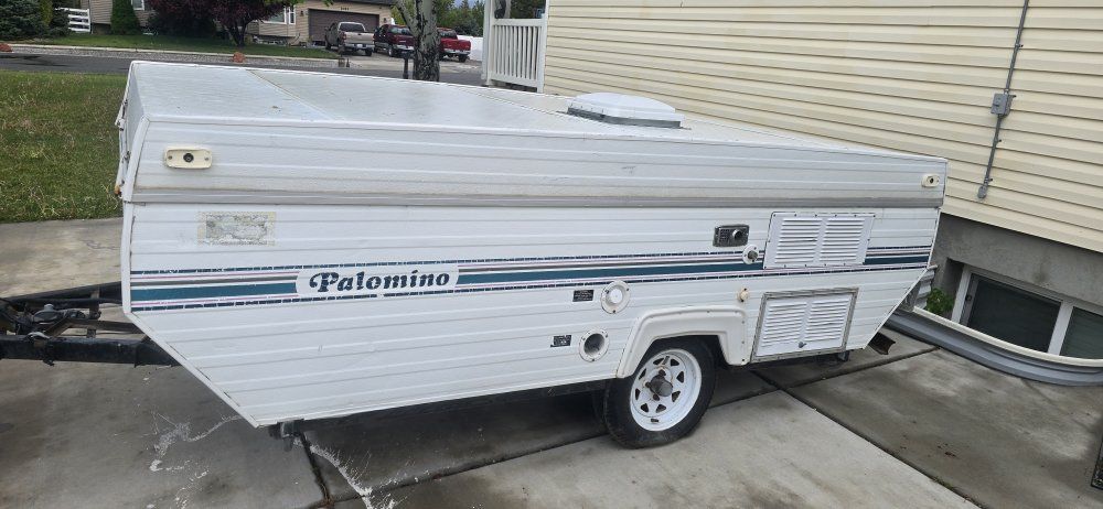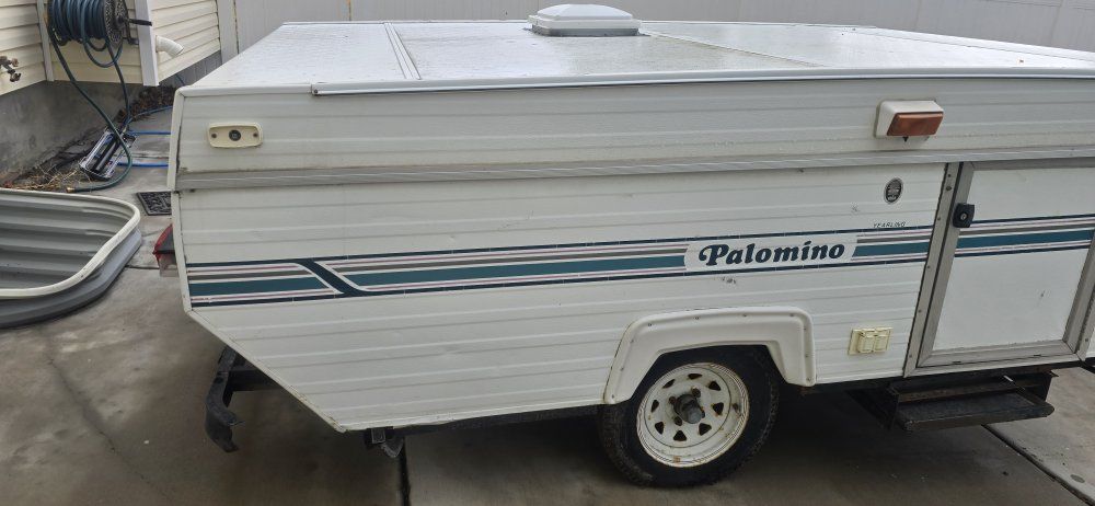 selling this 1995 Palomino pop up trailer. 2 slide out beds. couch turns into a bed. needs work. $1,200 obo