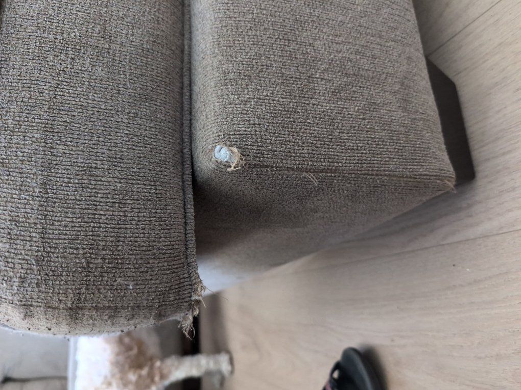 Venmocouch is really comfy but cushions need new Velcro or some additional cushion added in. dimensions are in the photo. home has dogs and kids so it does have wear on ottoman and some corners of the couch. I repaired the springs on one of the two seat sections so it is a little firmer.