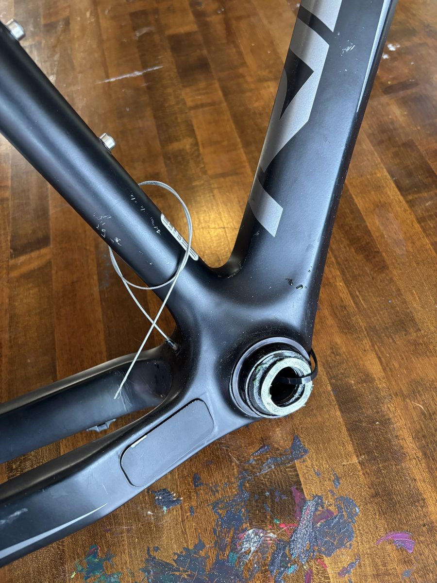 VenmoCarbon frame in good condition. Minor scratches. No damage 3.5 pounds. XL size Comes with Cane Creek 40 headset and bottom bracket in good condition. Internal cable routing will need some work if needed. Frame specs available online