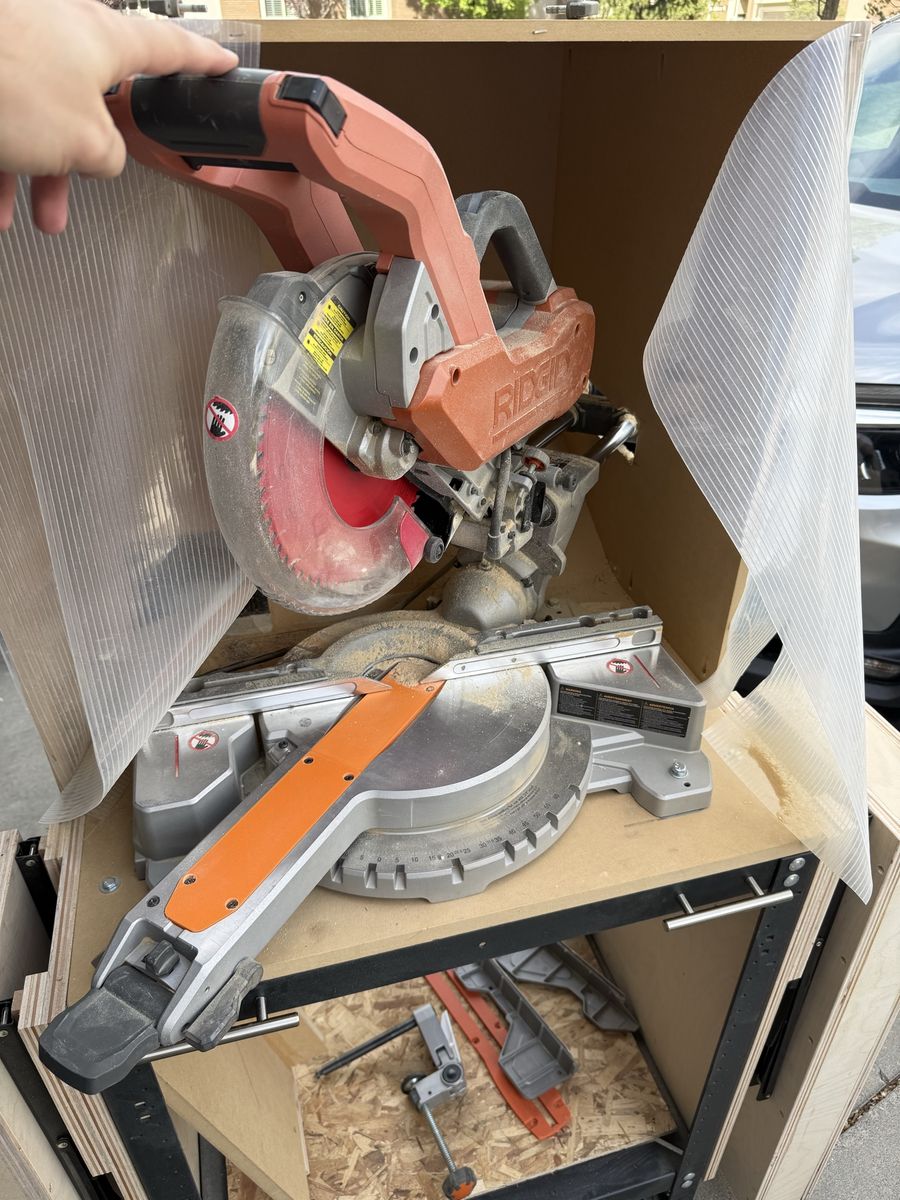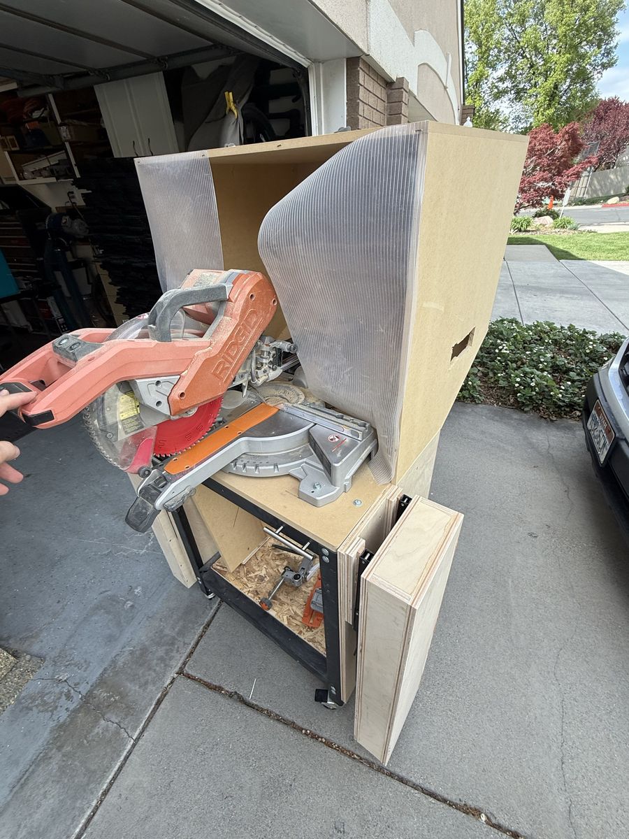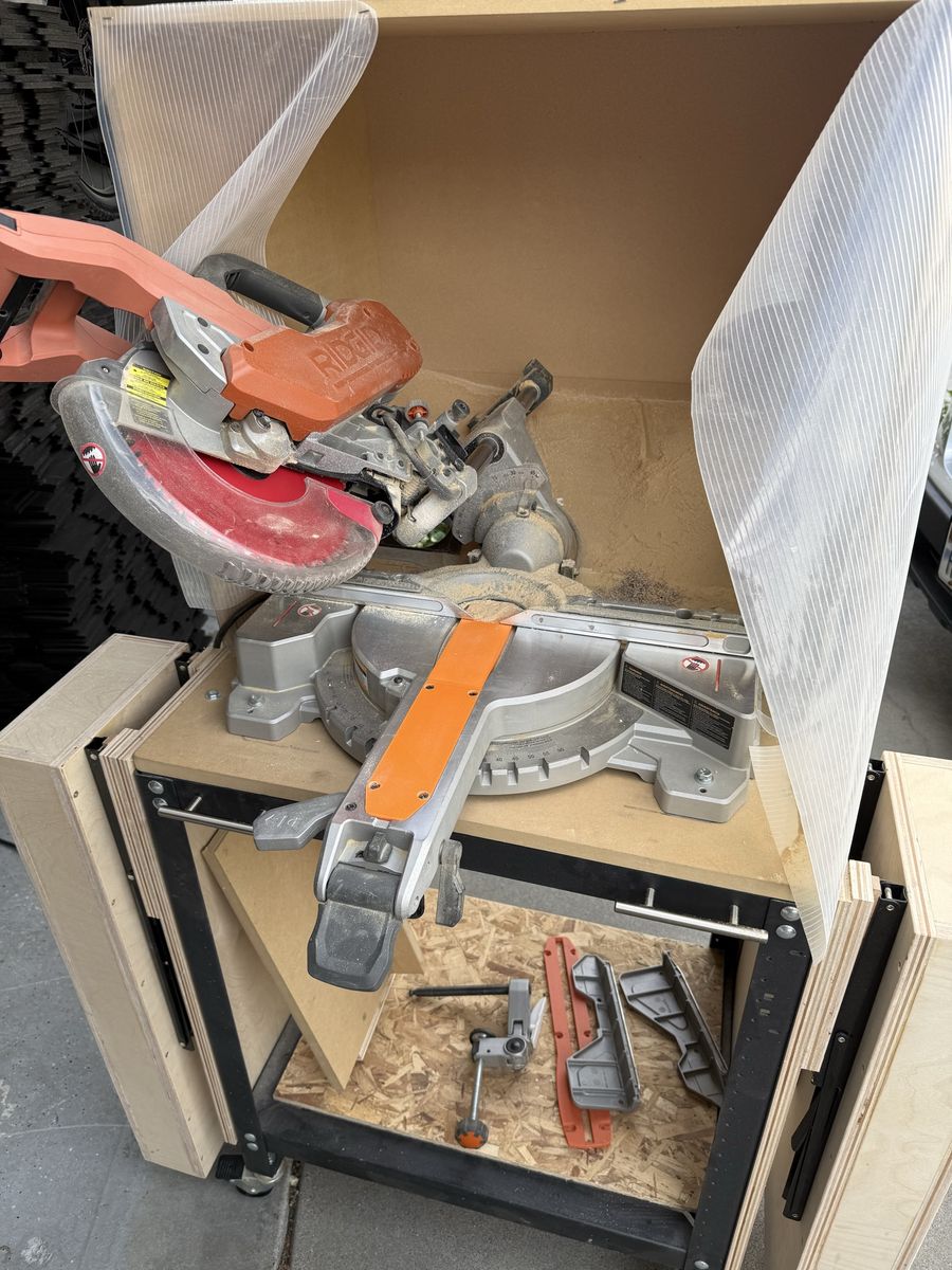 VenmoI am selling my mobile Ridgid 10” dual bevel compound sliding miter saw. It is compact in design on a Rockler rock-steady mobile base so it can fit in small spaces like my shop in half a 2 car garage. I added a dust box surround with 4” port to add dust collection. It dramatically reduces airborne dust which miter saws are notorious for. Each wing extends to allow 4 feet from the blade and hides away when not needed. I also have a few jigs like the small parts jig for full support and zero clearance under and behind. I primarily use this for most of my cuts. I also have it for miters. I added a 3d printed zero clearance but have not cut into it yet. I still have the original throat plate and zero clearance tape if desired. I have loved using this set up but I am moving and will be able to have a full miter station.