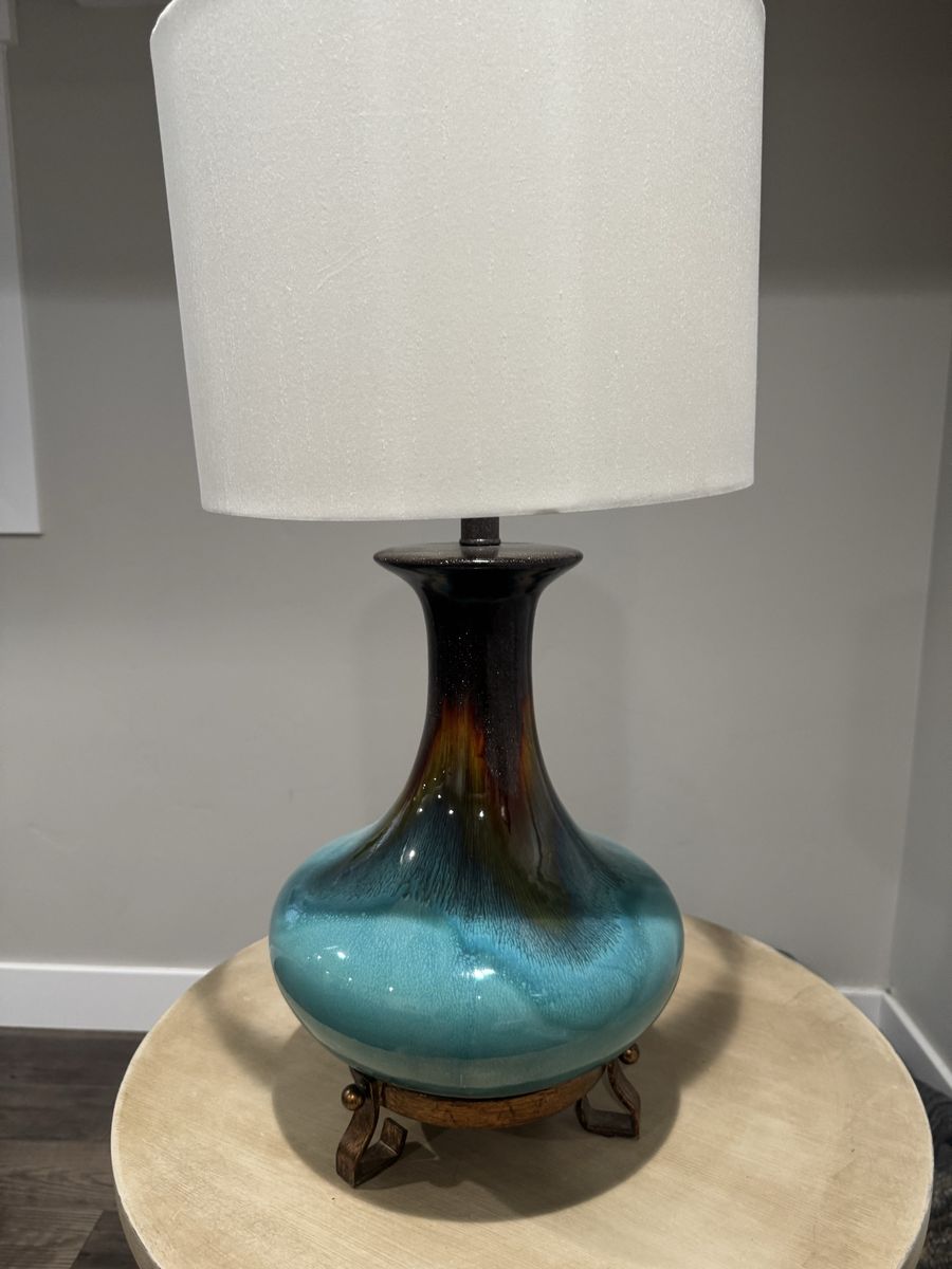 Beautiful table lamp. 29” tall and the shade is 14” diameter
