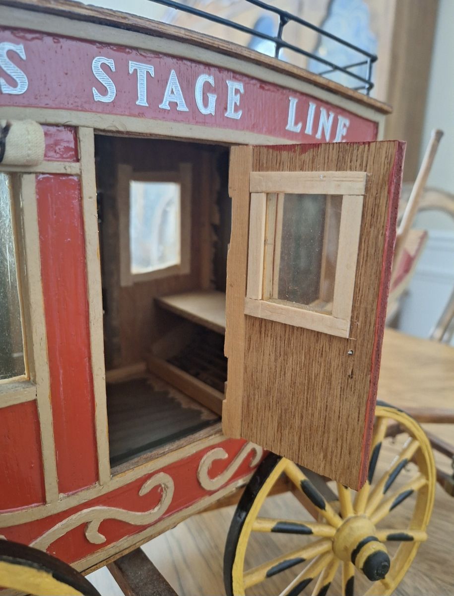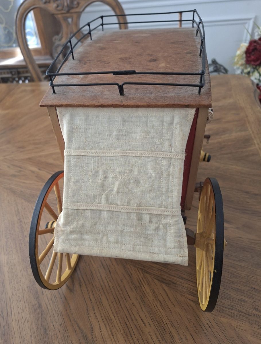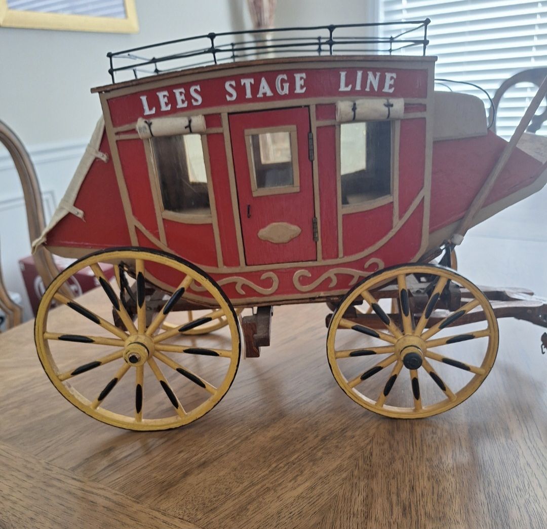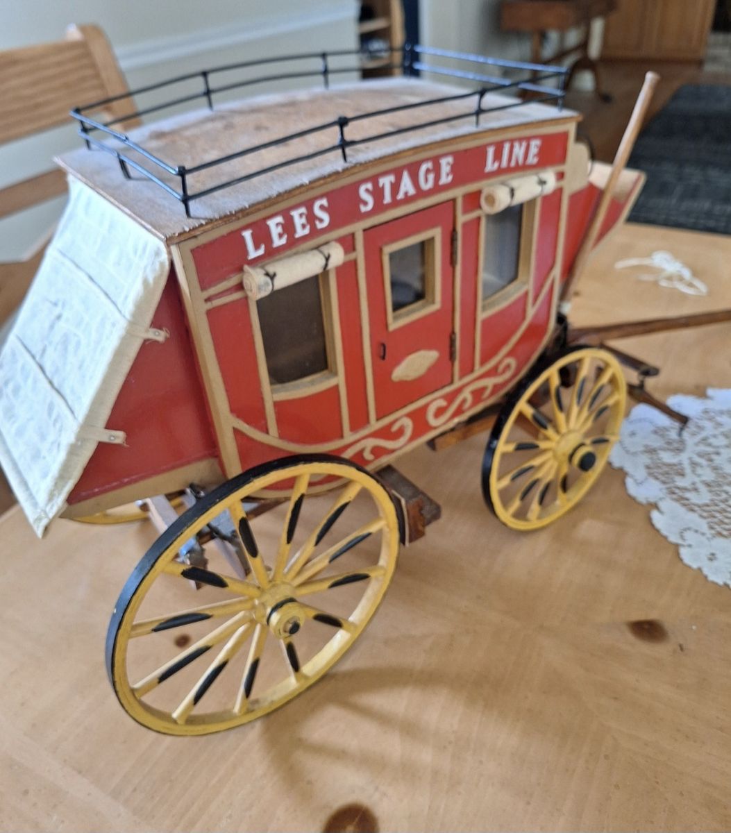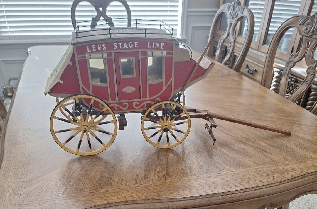 Model Stagecoach in good condition. About 13" tall and 19" long without tongue. With tongue, it's about 29" long. Cash only.