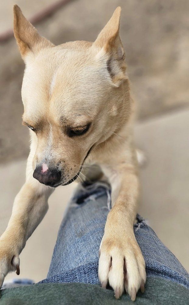 Introducing Elliott! He is, we think, a French bulldog mix, just over a year and full of life! He absolutely adores kids and loves nothing more than to give them hugs and snuggles. He would enjoy having human friends to play with. He gets along with cats and dogs as well. He will jump on you to give you all of the hugs you're willing to give. He is a lover boy who wants nothing more than to find his forever family. Elliot's adoption donation is
