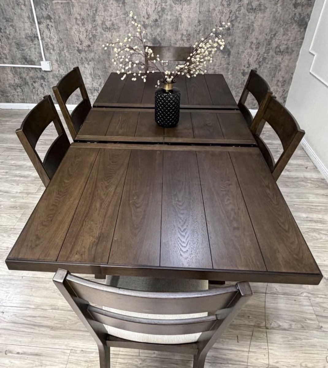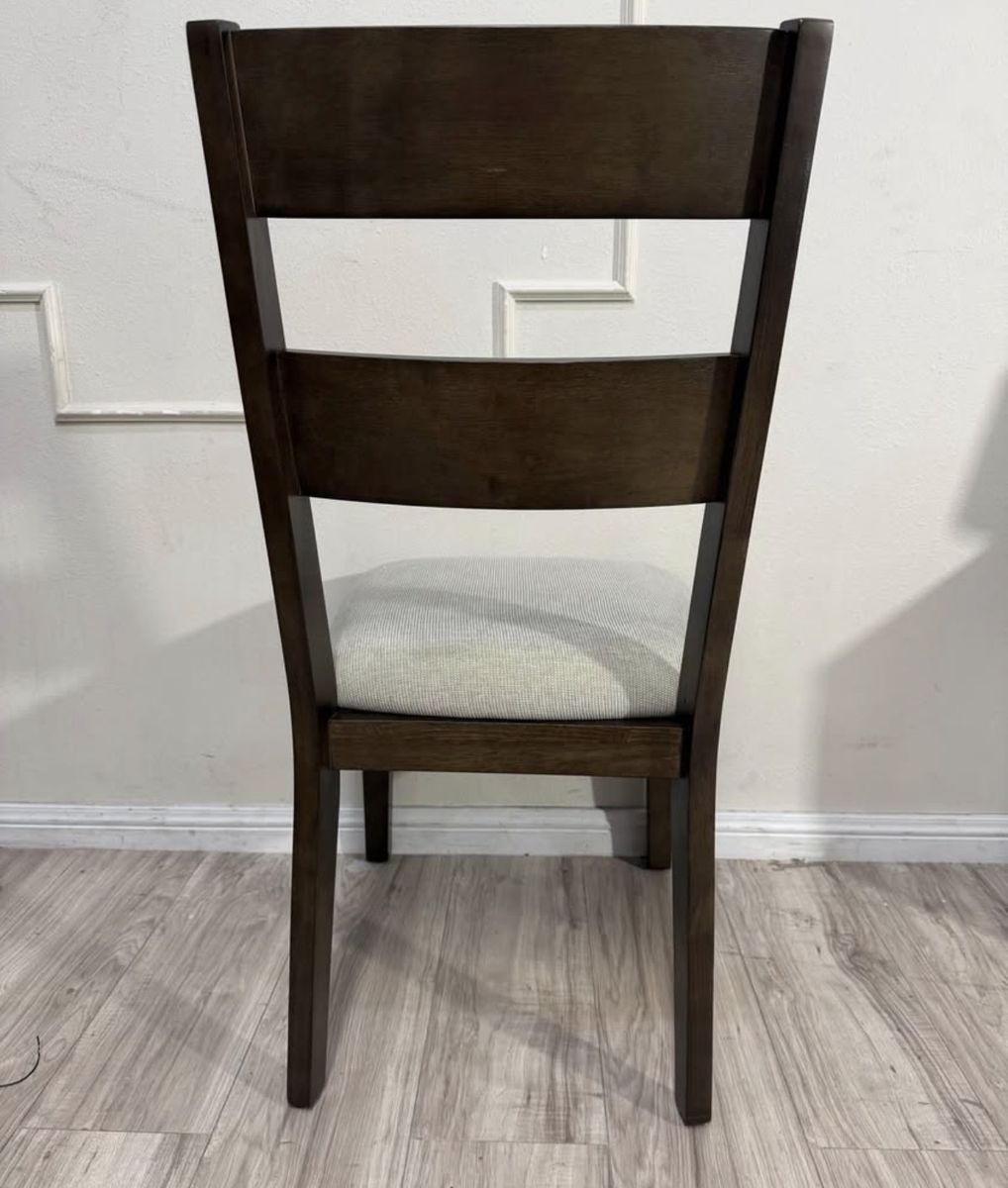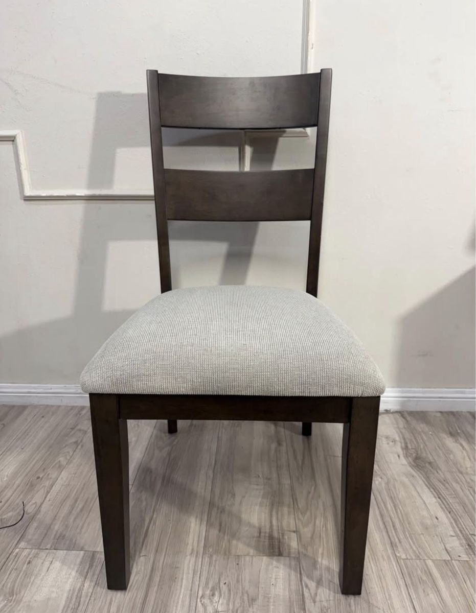 Rich, rustic and always ready for a dinner party, the Brinley 7-Piece Dining Set is farmhouse styling at its finest. Whether a more intimate gathering for a few, or everyday family meal time, six chairs and a self-storing leaf easily make room for more. Richly textured ash veneers, stylish fabric upholstery with comfy foam seat cushions, and solid rubberwood construction, make the Brinley a welcome addition to any home.