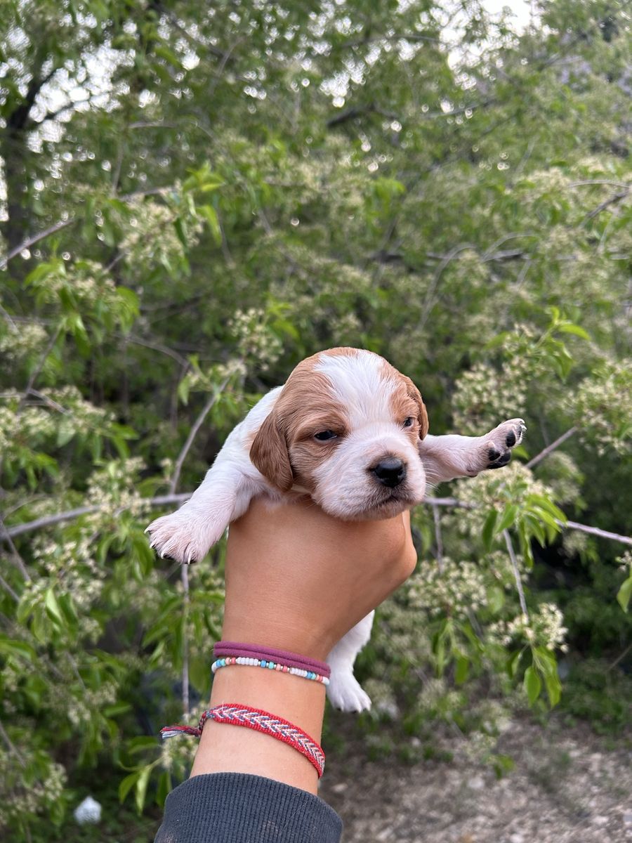 VenmoWe have a beautiful litter of 7 French Brittany Spaniel puppies. 6 males and one female. They are all healthy and happy. Tails, due claws docked and first set of shots will be taken care of. Pups were born March 31st 2026.