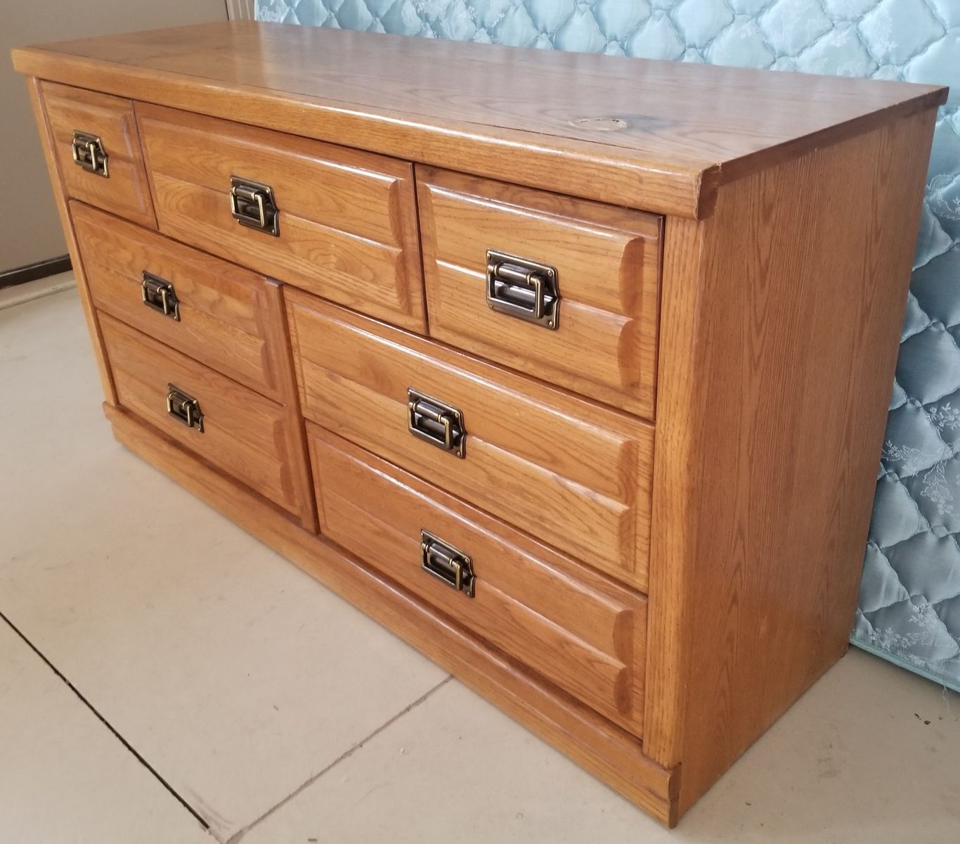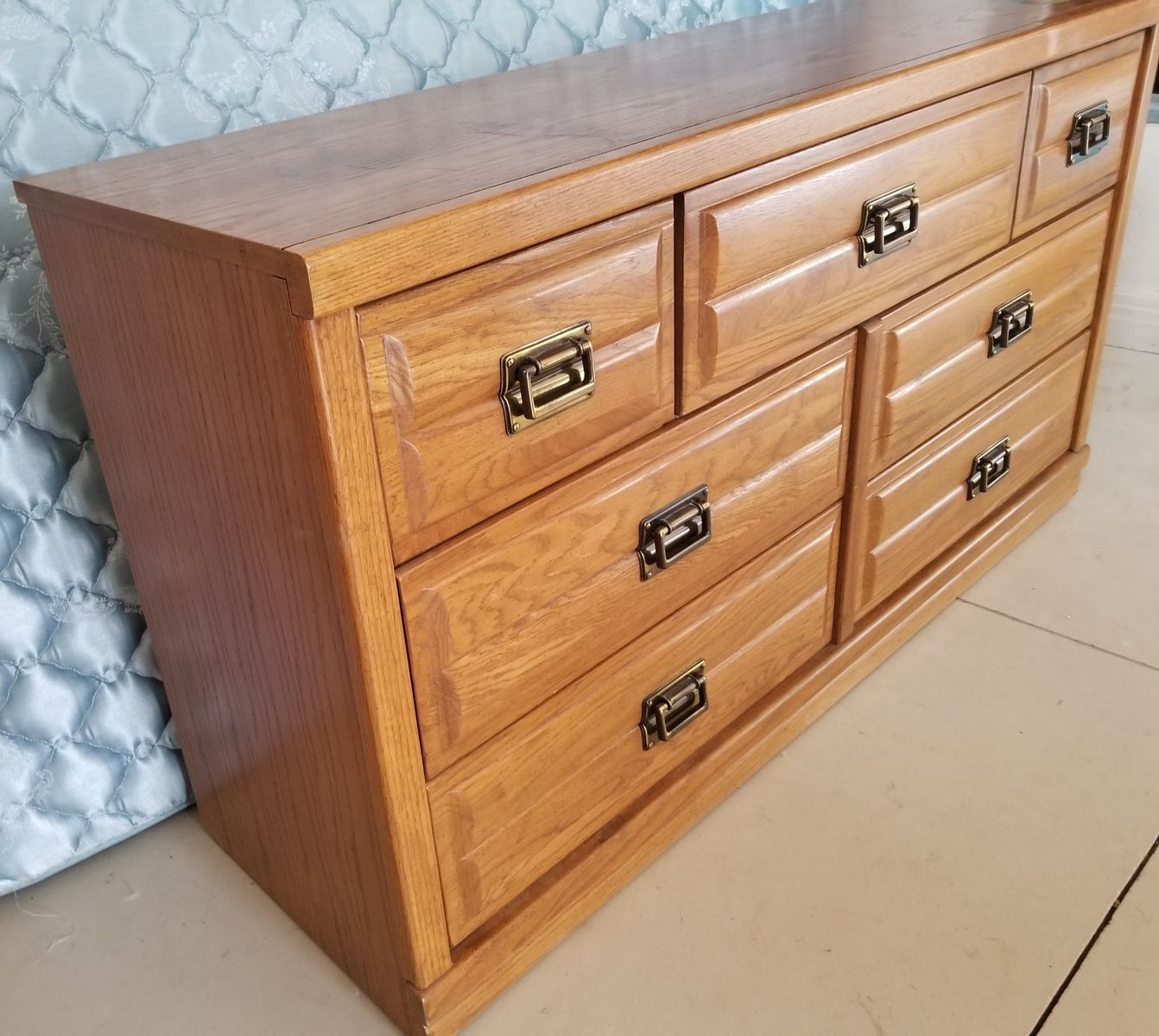 VenmoSolid wood 7-drawer dresser with classic styling and brass hardware. Heavy, well-built piece with smooth drawers and clean interiors. Made to last in Morristown, Tennessee.