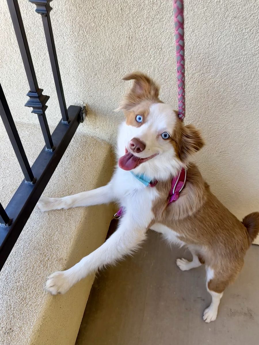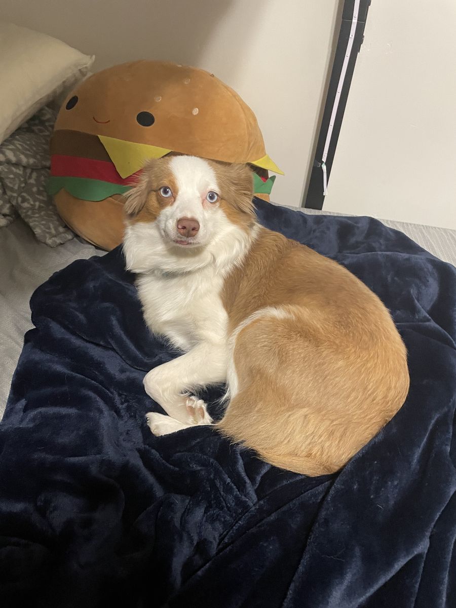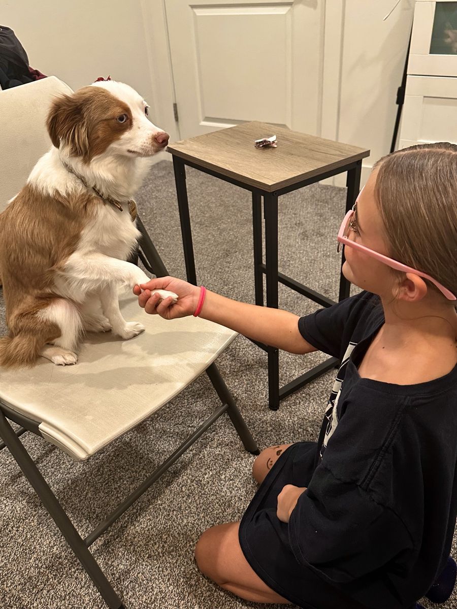ZelleThis cute girl is named Maple, she is a 2 1/2 year old pure bred Mini Aussie! She is not papered. She has tons of energy and loves to play with everyone! She is friendly and gets along with humans of all ages and other dogs. She is up to date on all her shots. We are needing to re-home her because she needs a place where she can run and a family who will have more time for her. I work 60hrs a week plus other obligations and she is by herself for that time. She is very smart obedient dog, she is house trained and kennel trained for sleeping. I have a bucket of toys, leashes and her kennel to come with her.