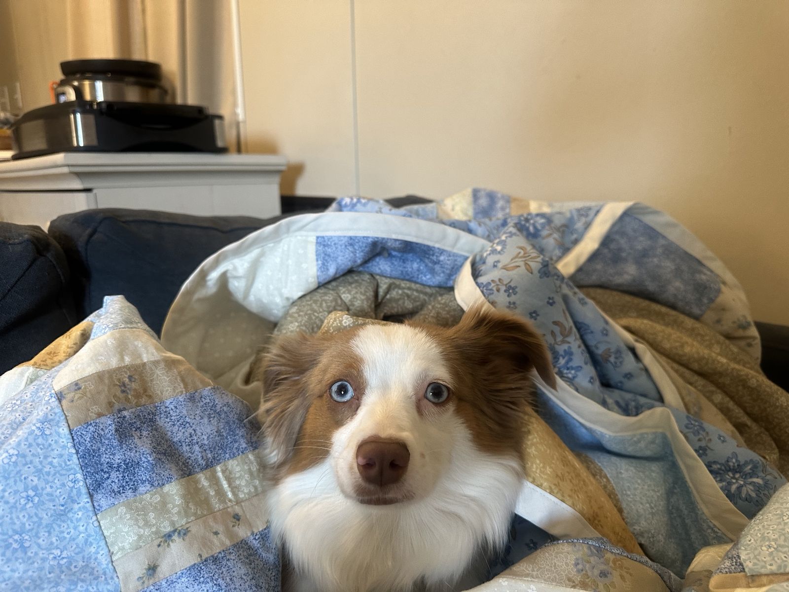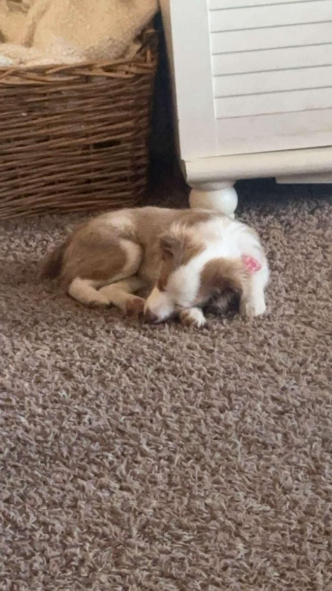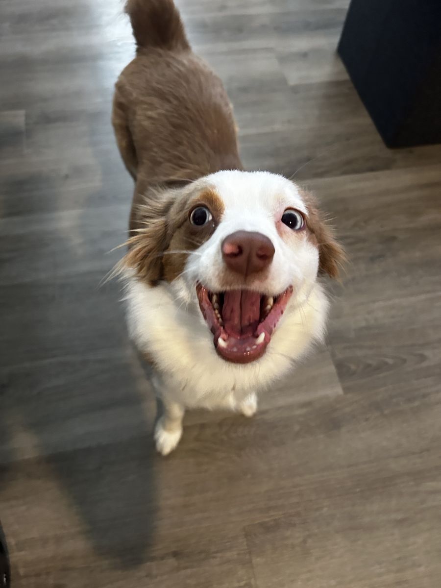 ZelleThis cute girl is named Maple, she is a 2 1/2 year old pure bred Mini Aussie! She is not papered. She has tons of energy and loves to play with everyone! She is friendly and gets along with humans of all ages and other dogs. She is up to date on all her shots. We are needing to re-home her because she needs a place where she can run and a family who will have more time for her. I work 60hrs a week plus other obligations and she is by herself for that time. She is very smart obedient dog, she is house trained and kennel trained for sleeping. I have a bucket of toys, leashes and her kennel to come with her.