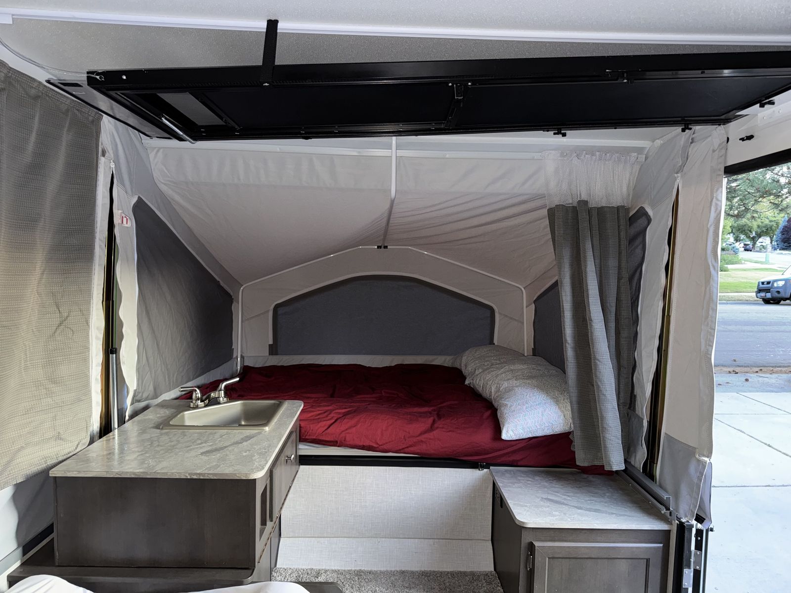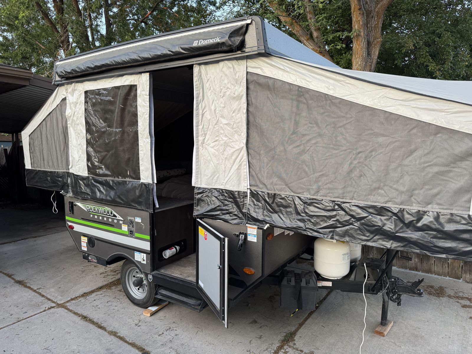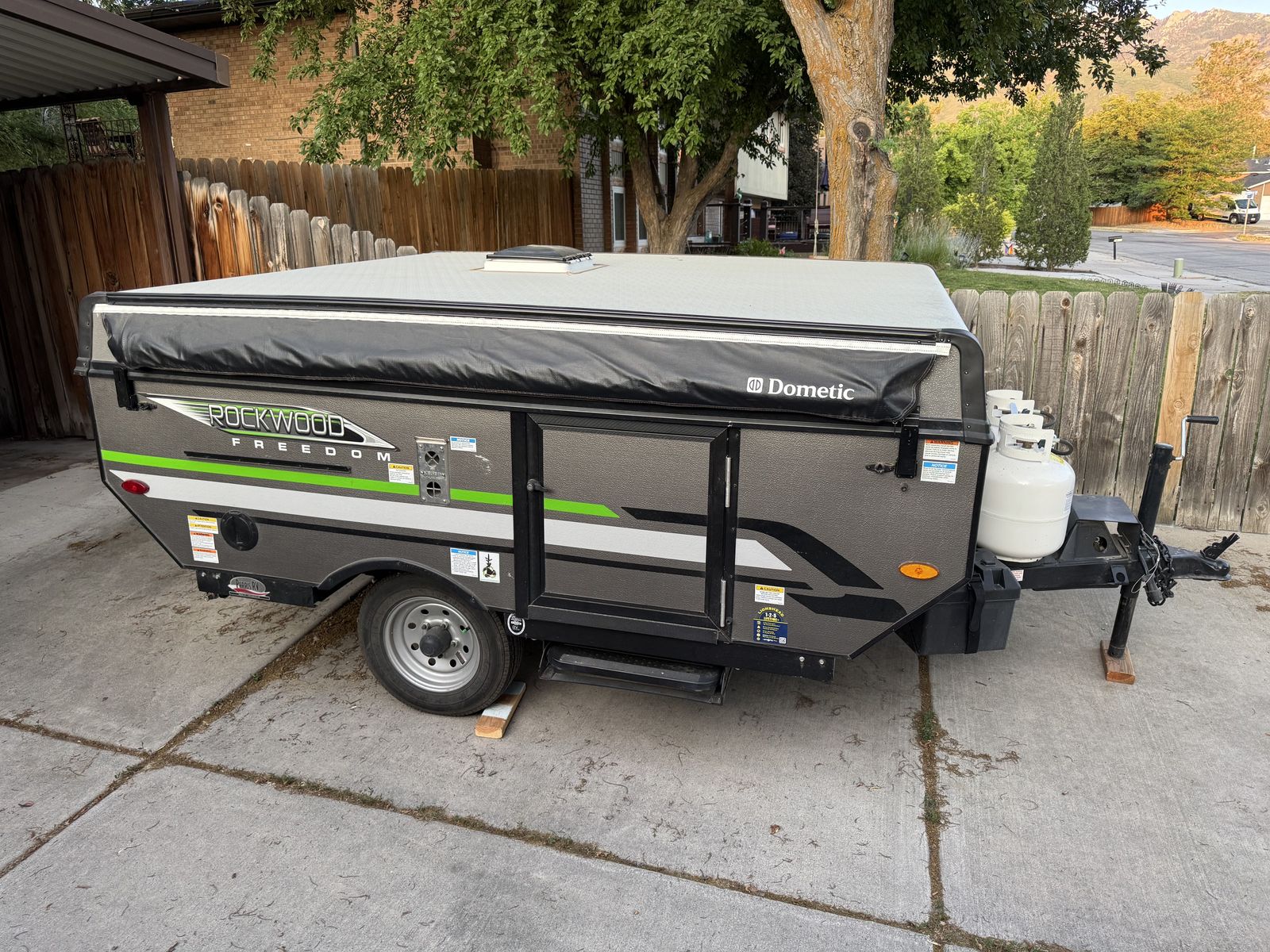 2021 Forest River Rockwood Freedom 1640ltd pop up tent trailer. Great condition, but we have grown out of it. 12' 4" including hitch collapsed, 17' set up. 1465 dry weight, 162-220 hitch weight. Light enough we towed it with our subaru outback without issues. 7' awning. We never used the water system, but have a new pressure regulated hose that is included. Also includes cables for plug ins, never used griddle (seperate from included stove). Stove hookup exterior or interior. Fridge is propane or electric (can run on battery or plug). Heat is propane and is great for extending the camping season (mattresses are also heated if plugged in).