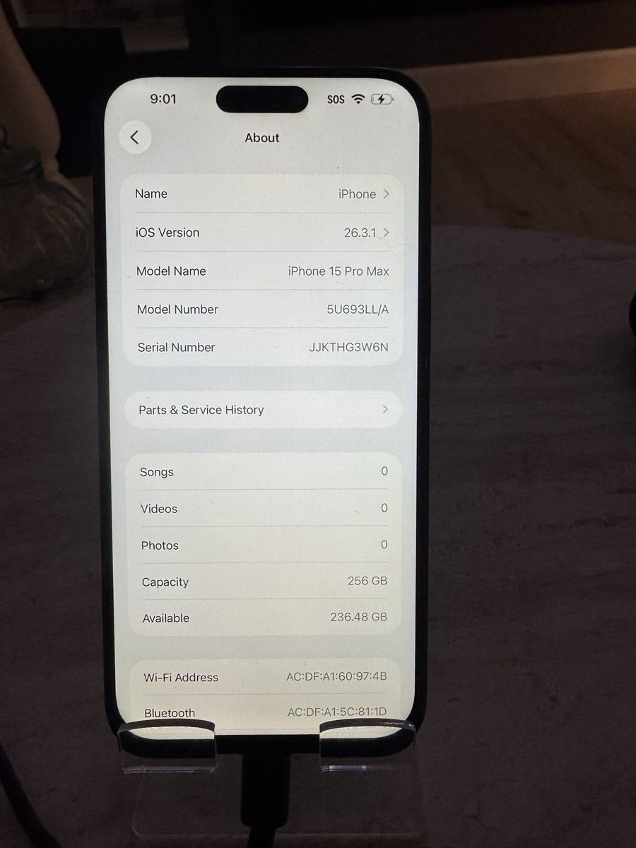Fully functional iPhone 15 Pro Max 256GB Unlocked (works with any carrier) Clean IMEI, ready to use Battery and performance great Message me if interested :)