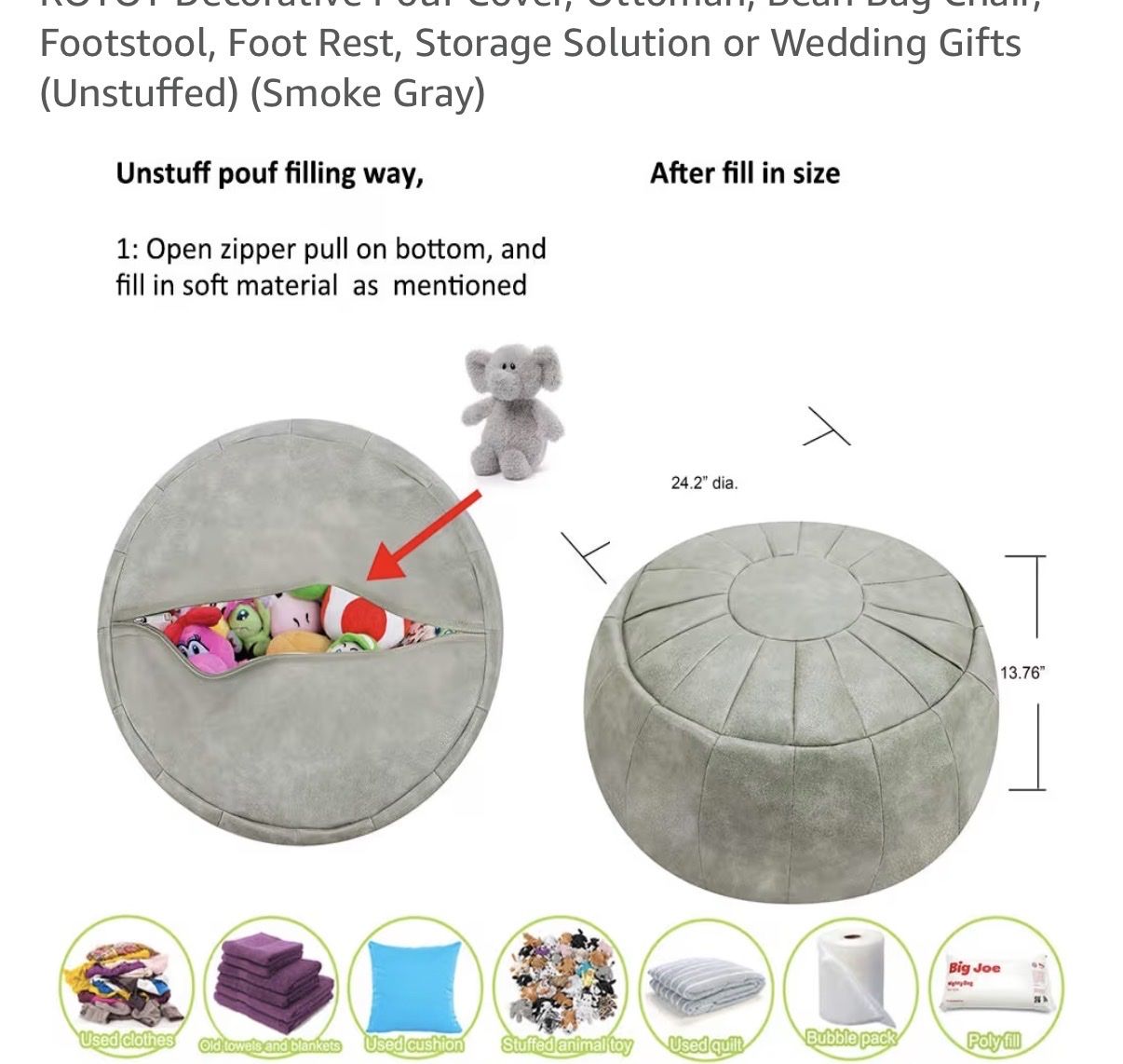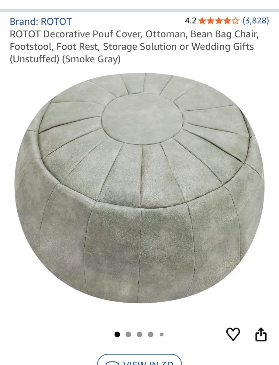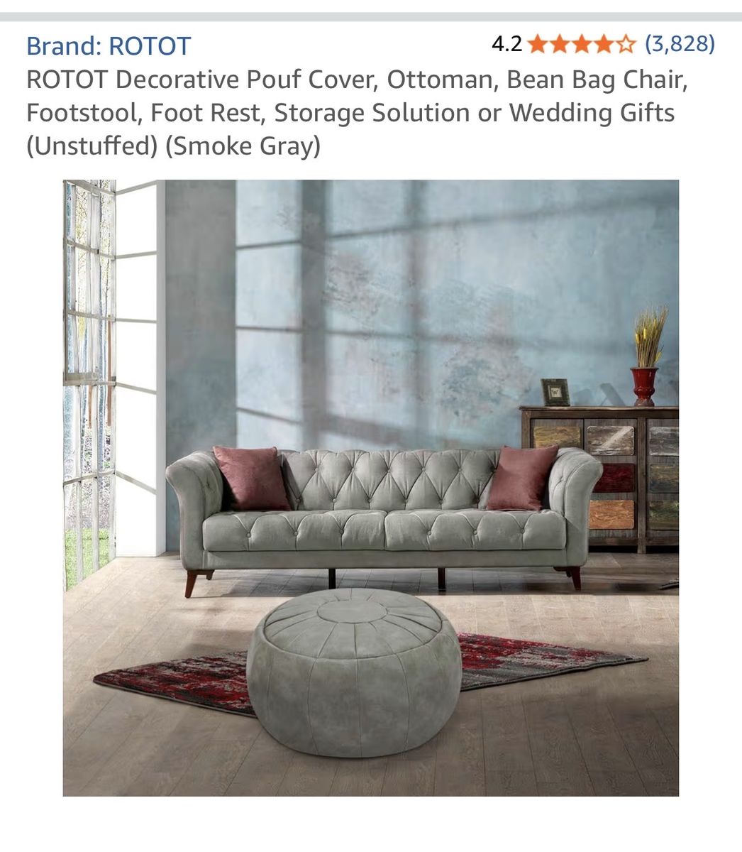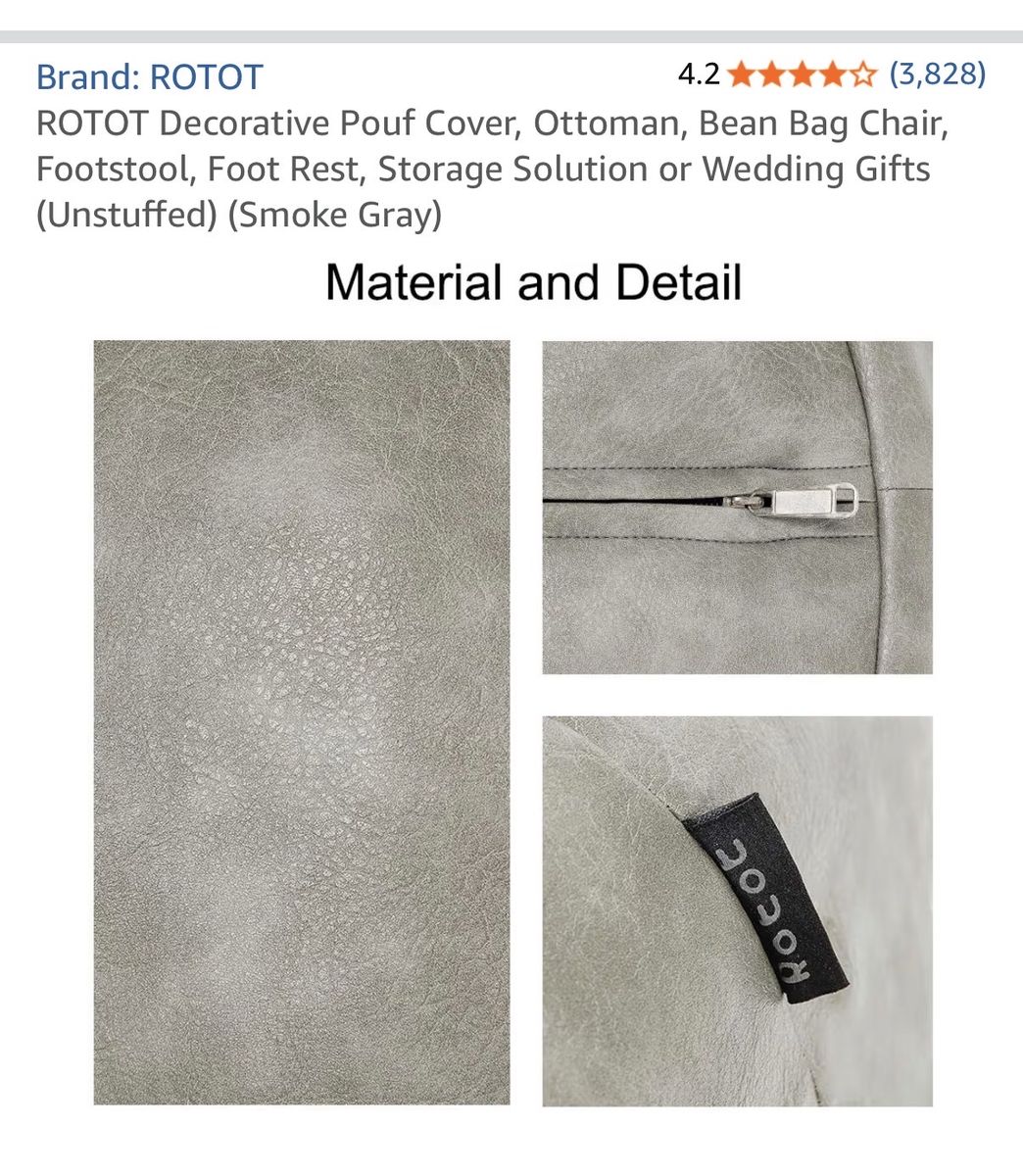 VenmoROTOT Decorative Pouf Cover, Ottoman, Bean Bag Chair, Footstool, Foot Rest, Storage Solution(Unstuffed) (Smoke Gray) Only used a few times. Has been unstuffed and in storage. Smoke free, pet free home.
