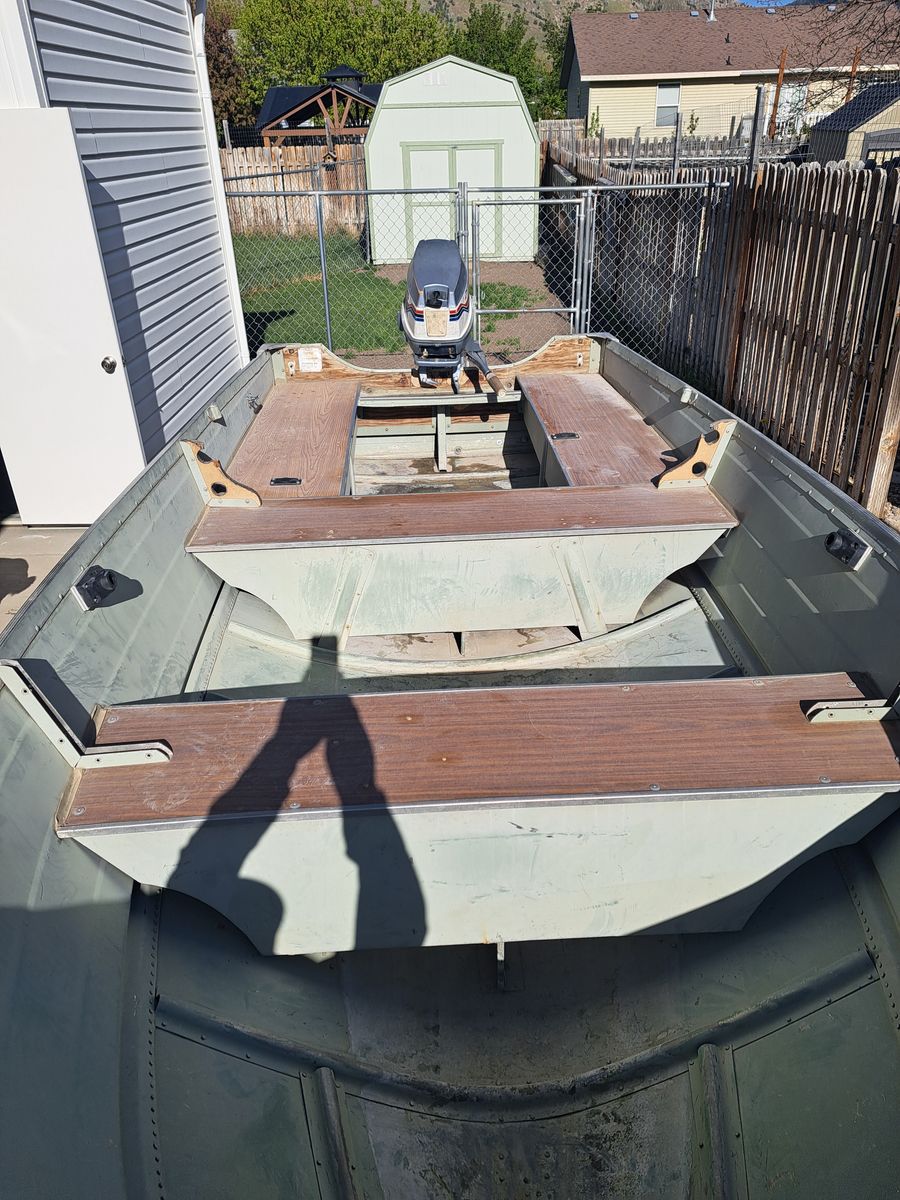 Included are working trailer lights, transom saver, boat cover, two 25 ft ropes, four Scotty rod holder bases, two Scotty rod holders, Lawrence Hook fish finder with battery, two cleats one bow one aft and two folding vinyl cushion seats with back support (a must for fishing all day).