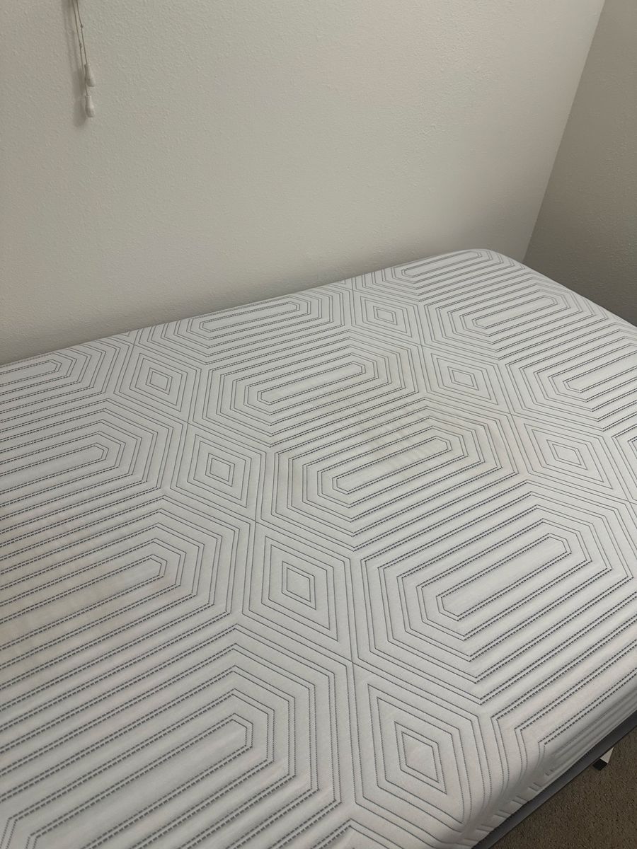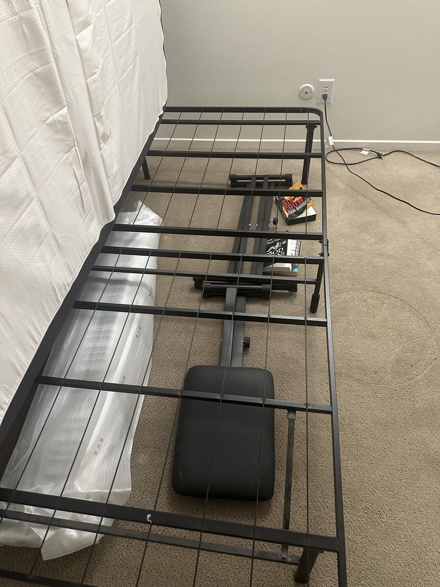 Twin XL bed frame with mattress in good condition.