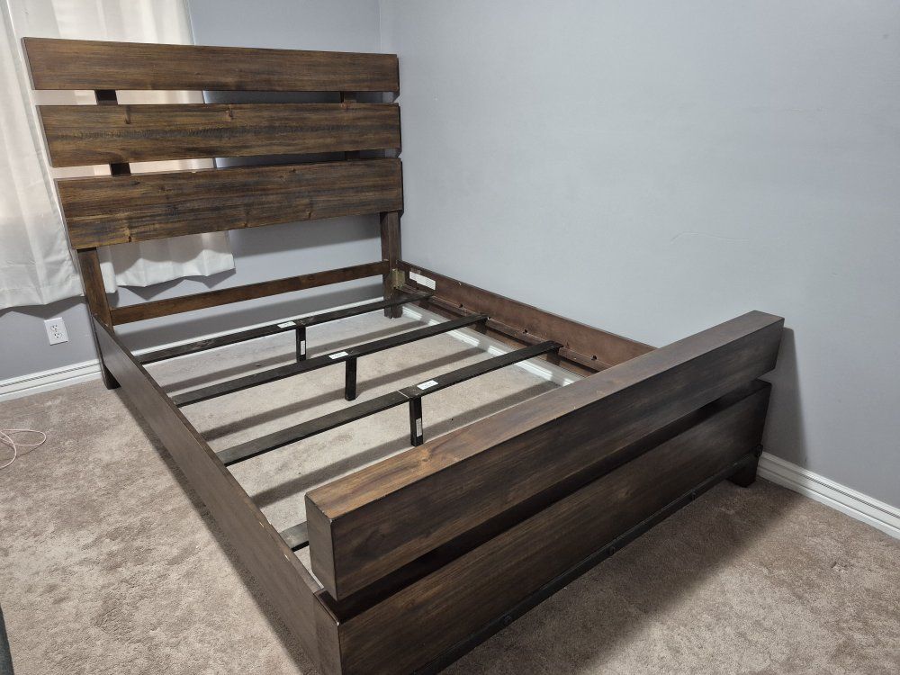 Solid Wood Queen bed Frame in good condition. Good quality.