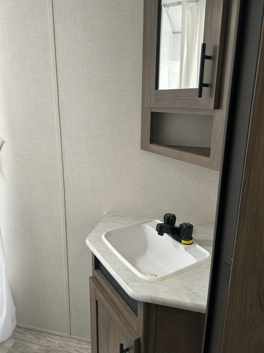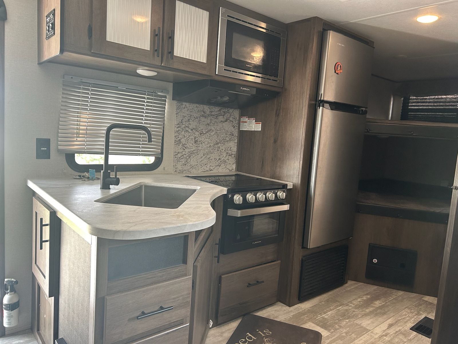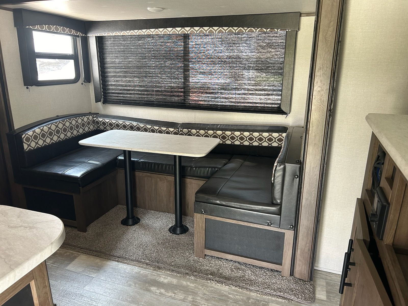 ApplePayVery clean and well cared for 2021 Avanger travel trailer. Lightweight and easy to tow with an SUV or half ton at around 3,800 lbs dry, just under 27’ long, and double axle for extra stability and cargo/payload capacity. Great family layout with queen bed, bunk beds (super roomy bottom bunk), and table that converts into a bed. Sleeps up to 7