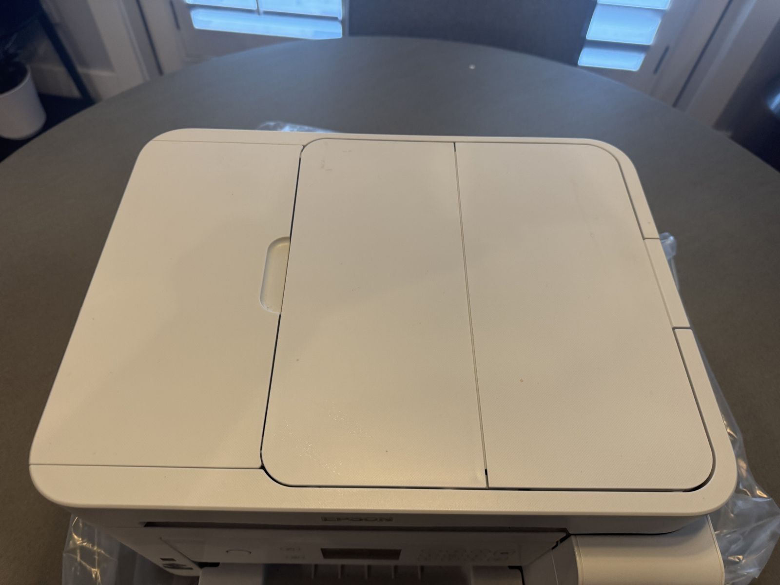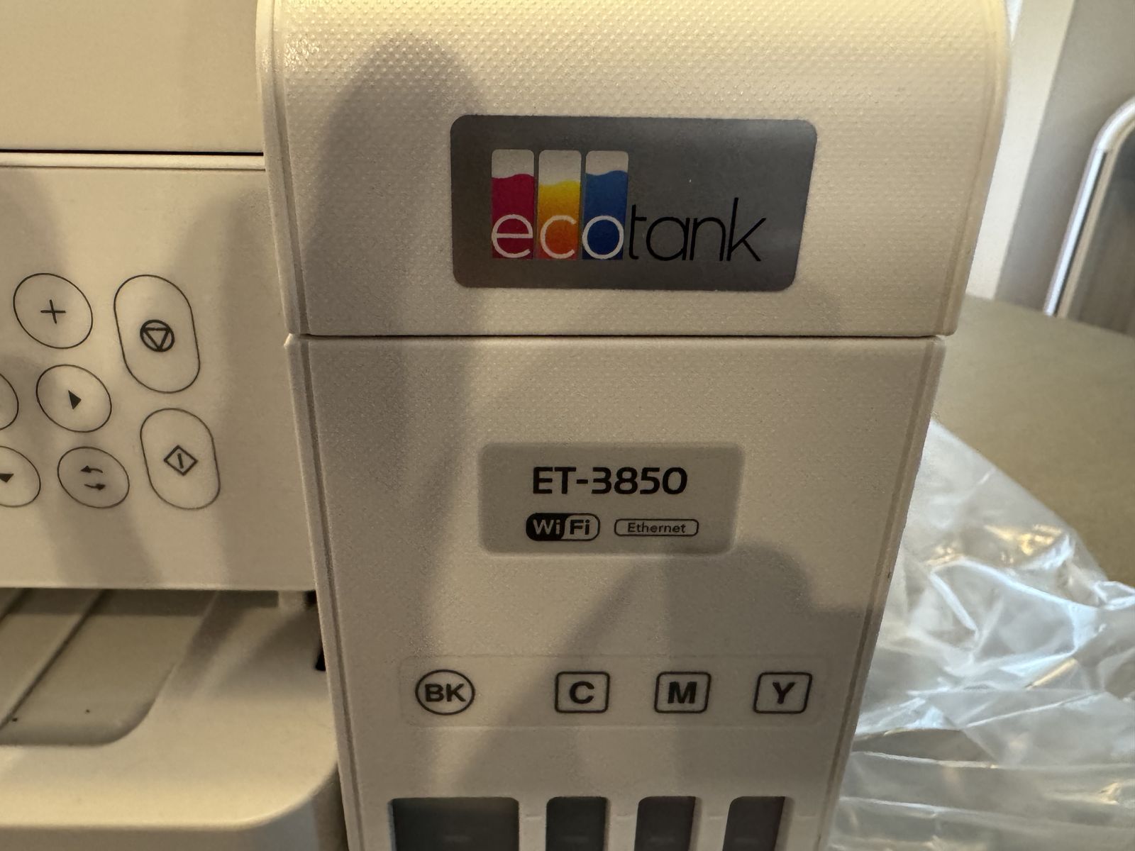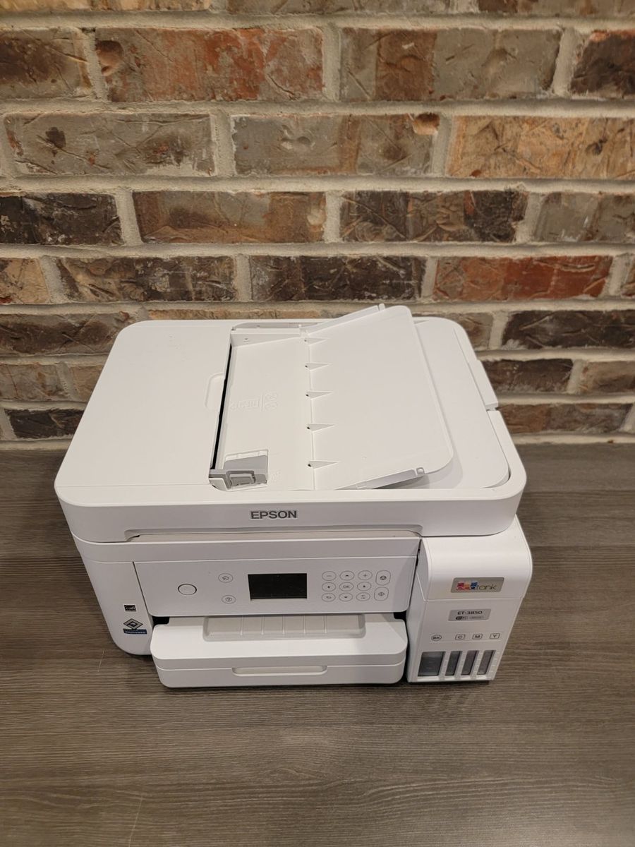 Epson EcoTank ET-3850 Wireless Multifunction Printer, a versatile and efficient printer that is perfect for all your printing, scanning, and copying needs. This all-in-one printer boasts a sleek and stylish design, with a white finish that will complement any workspace.