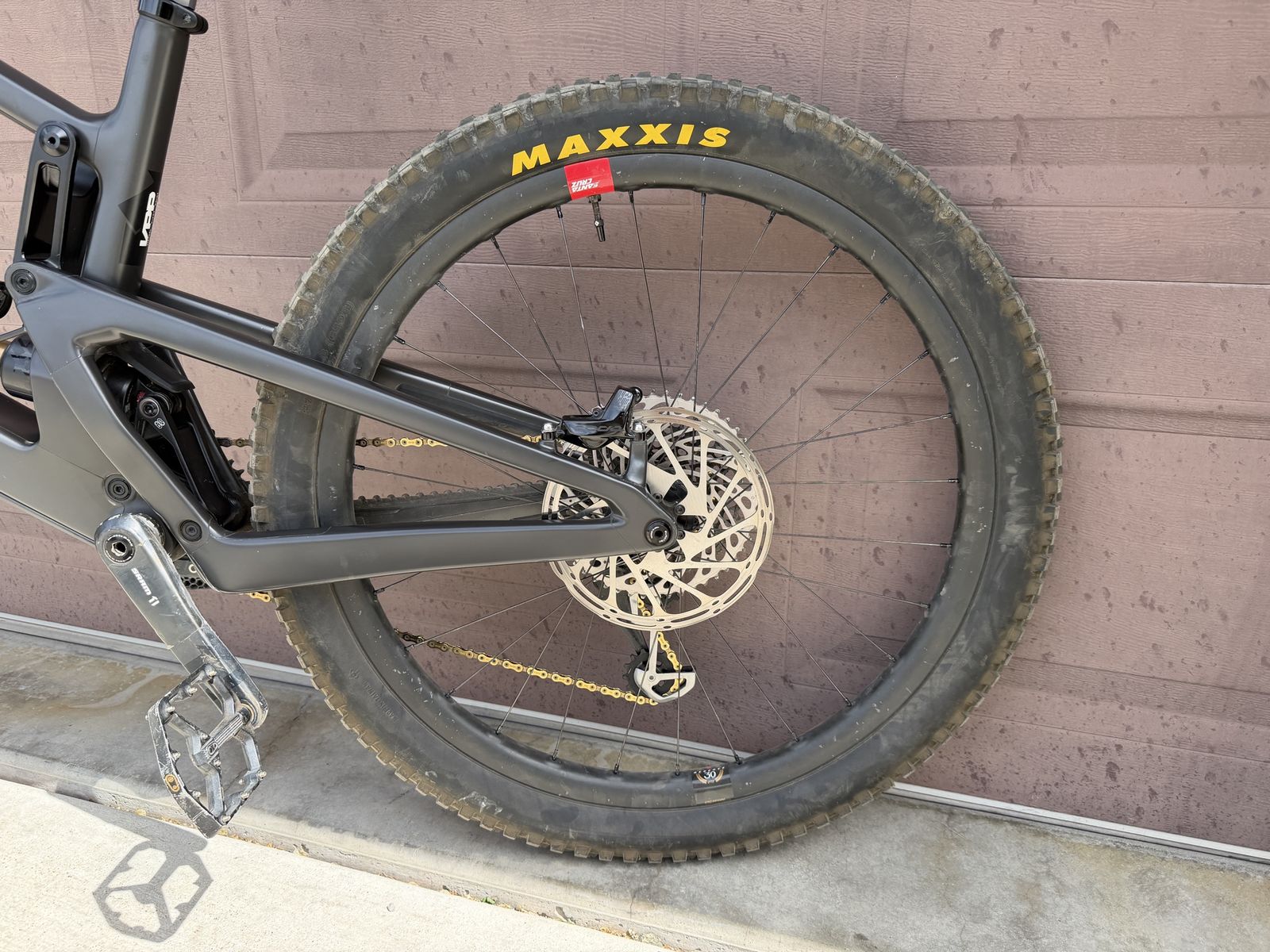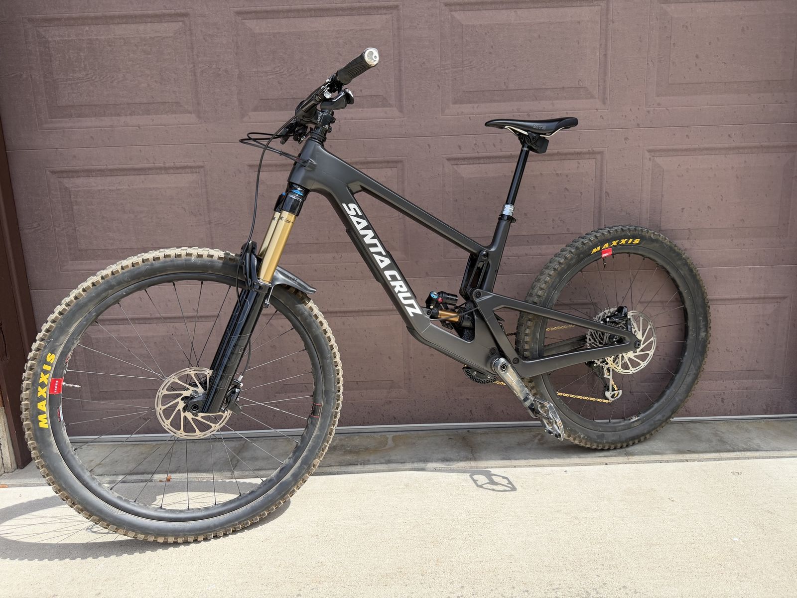 -Carbon CC in size Large -Fully custom ride wrap. Every inch of the bike frame and fork are protected. -Reserve carbon wheels 29 front, 27.5 rear X01 Groupset -RockShox Reverb AXS dropper 170mm (bought in 2024) -170mm Fox Factory Float X2 Shock -170mm Fox Factory 38 Float Fork