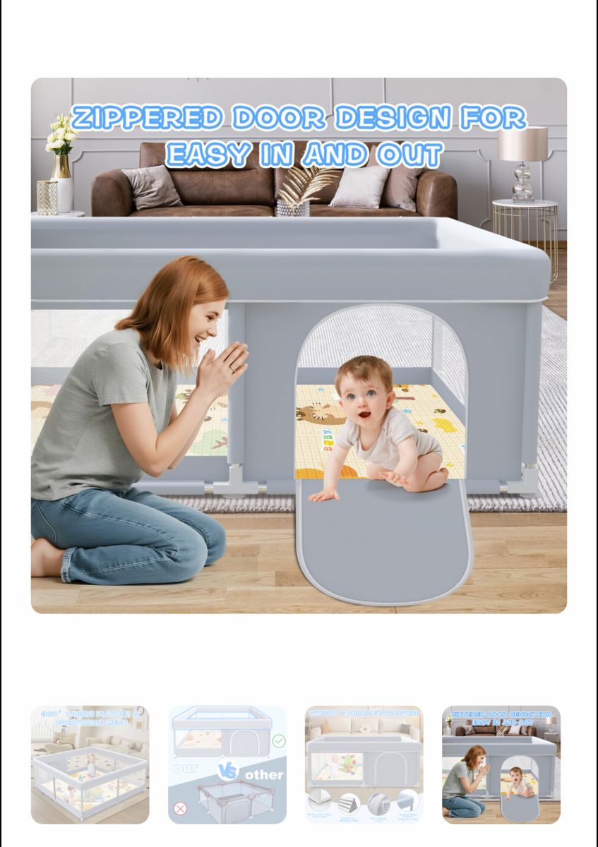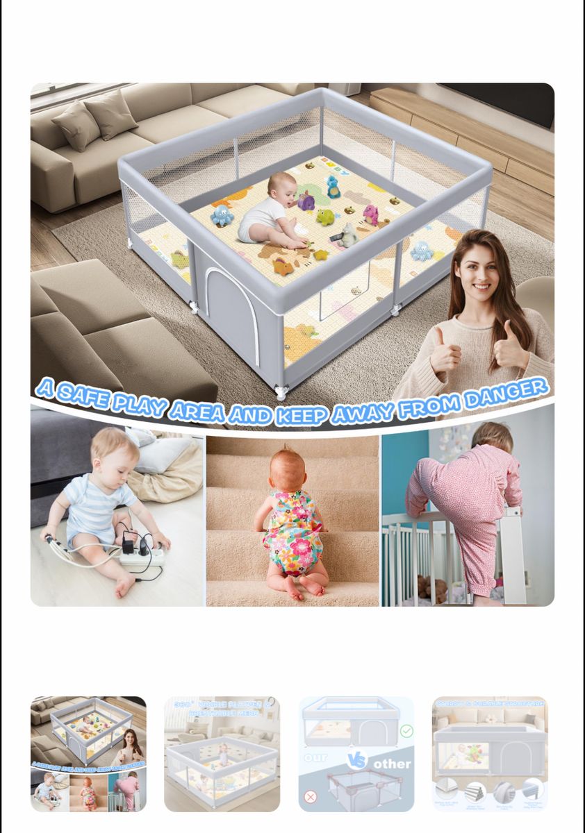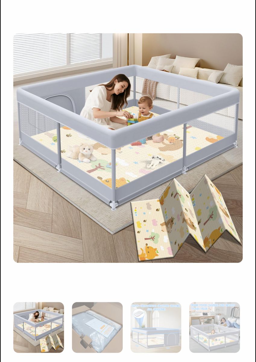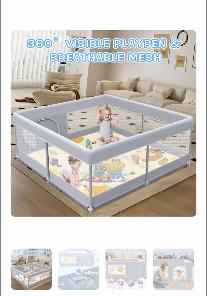 ApplePayXVISHX Baby Playpen with Mat, 50 x 50 Inch Play Pen Playards, Playpen for Babies and Toddlers, Baby Playard for Indoor & Outdoor Active Center Game Fence, Skin-Friendly Fabric and Soft Breathable Mesh