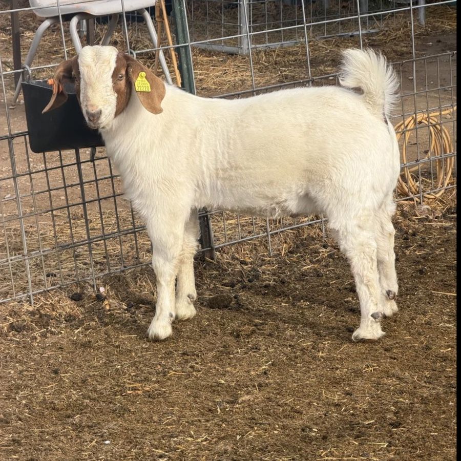 Born Thanksgiving weekend 2025. His sire is Perfect Timing x Walk the Line Dam: Norman Kohls x 191 Included is a picture of his sire. This is a stout and flashy buck kid. He has tons of muscle, bone, and a big butt. If you are needing some new genetics and want to up your competitive game better look at this one. His mom produced a class winner at the Utah state fair and another keeper buck a few years back. We have mature doe’s and doe kids for sale also.