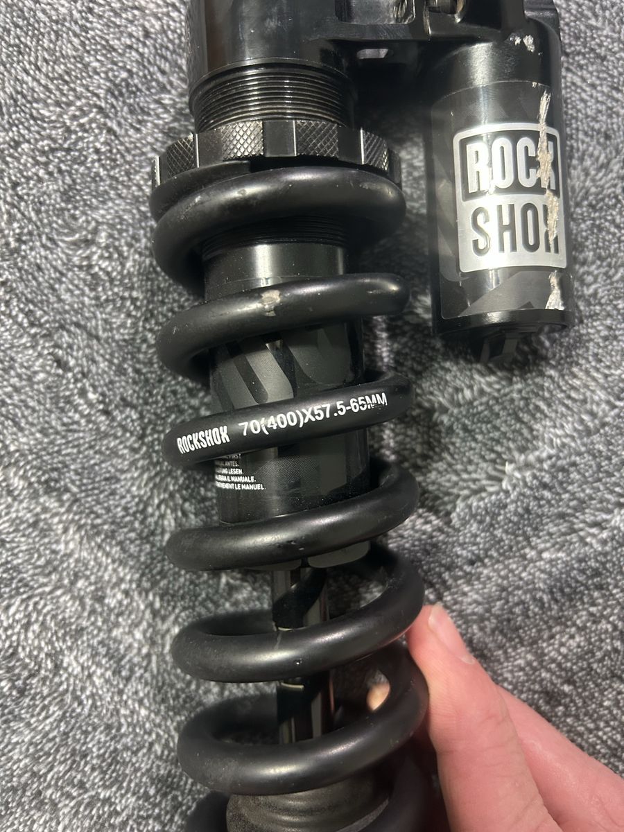 Has about 50 hours on it, still feels like new smooth. Just sold the bike that used it with an air shock so no need for it anymore. It does have some scratches which were from transporting the bike, all superficial.