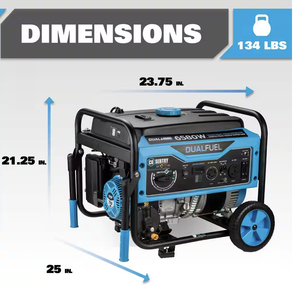 -6,580-Watt peak/5,300-Watt rated (gasoline)