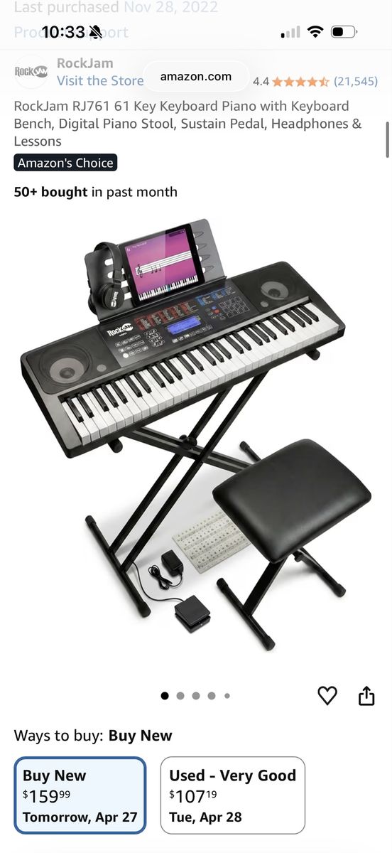 VenmoBought for my son off Amazon for $159.99. All it has done is collected dust. Comes with bench. (I forgot to put it in the photos) also comes with headphones and foot pedal.