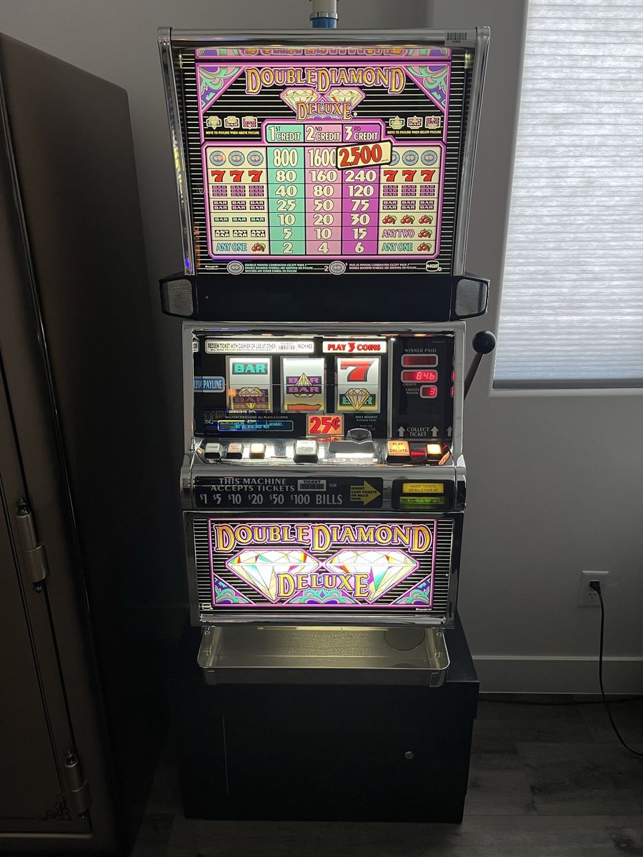 1- Double Diamond Deluxe, reals move up and down, enhanced sound , built multi denomination default Quarter. 2-lnhanced game king upgrade lcd touch, slots like Texas Tea, ect, poker, Keno and 21. 3- This has the exact multi-hand poker game software you want and it is actually what they call an enhanced I-game plus. The enhanced I-game plus can not only run all the game king software but also all the regular I-game software and the enhanced I-game software. It has two rows of buttons (for lines played and coins per line played). So it can also run games like DaVinci Diamonds, House of the Dead, etc., 4-This is the holy grail, Wild Thing. It is essentially a haywire machine but instead of calling haywire mode they call it Frenzy mode but works the same. Machine plays the song “wild thing” and Wild thing is much harder to come by than haywire and haywire is almost impossible so this is a rare machine.