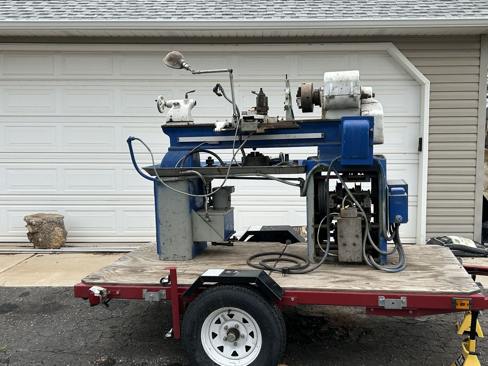 Lathe is already loaded onto a trailer. Willing to include trailer in purchase (4'x8', load capacity of 1,720 lb) for extra.