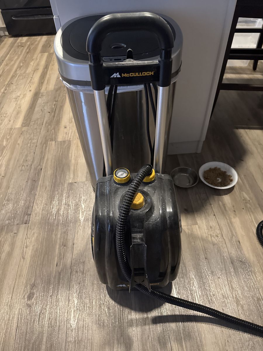 PayPalMcCulloch MC1385 Deluxe Canister Steam Cleaner, 2-Hour Runtime, Chemical-Free, Accessories: Mop Head, Brushes & More – Built for Home, Tile, Carpet, Furniture, & Personal Car Detailing. Very little usage, in excellent condition.