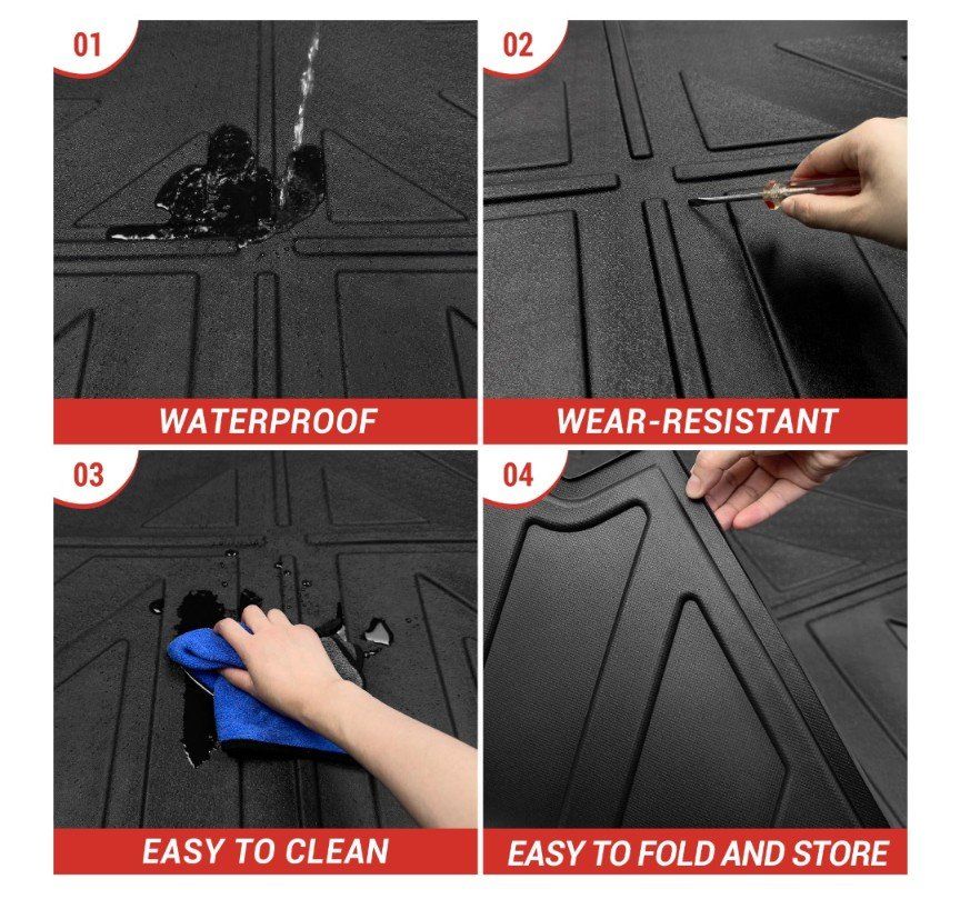 Waterproof: Easy to disassemble and clean. The unique texture design on the surface of the truck bed mat allows it to drain water quickly after a rain without pooling water on the mat.
