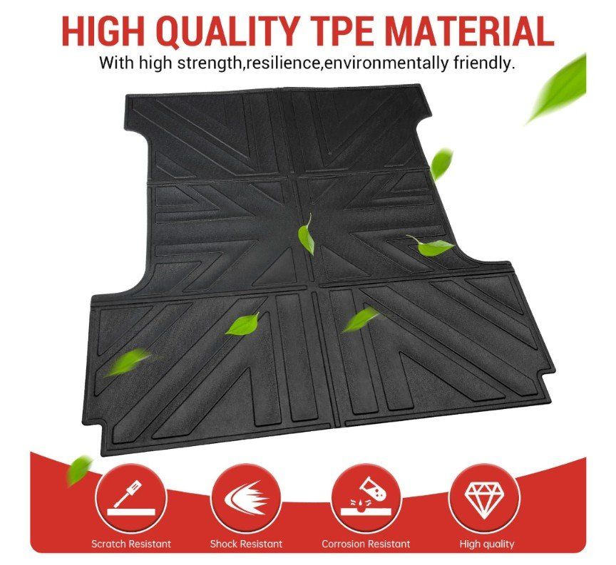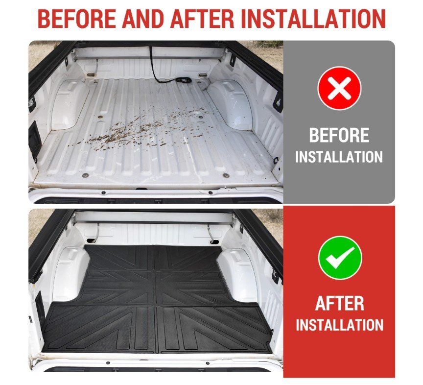 Upgraded TPE material: Our bed liners are made of high-quality TPE (thermoplastic elastomer), which has high strength, good resilience, no odor, scratch-resistant, easy to clean, and is not easy to break. Lighter and more environmentally friendly than rubber mats, even one person can easily install it.