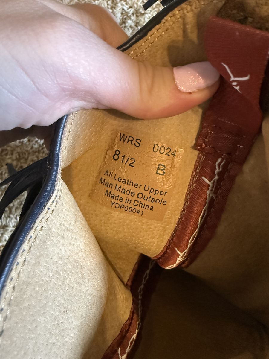 Size 8 1/2. They were given to me as a gift, but I like pointy toes boots so I never ended up wearing these.