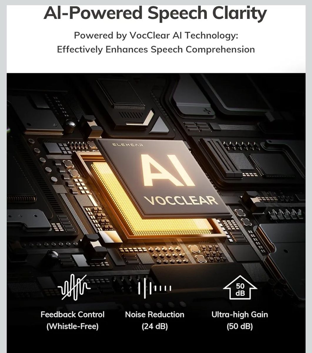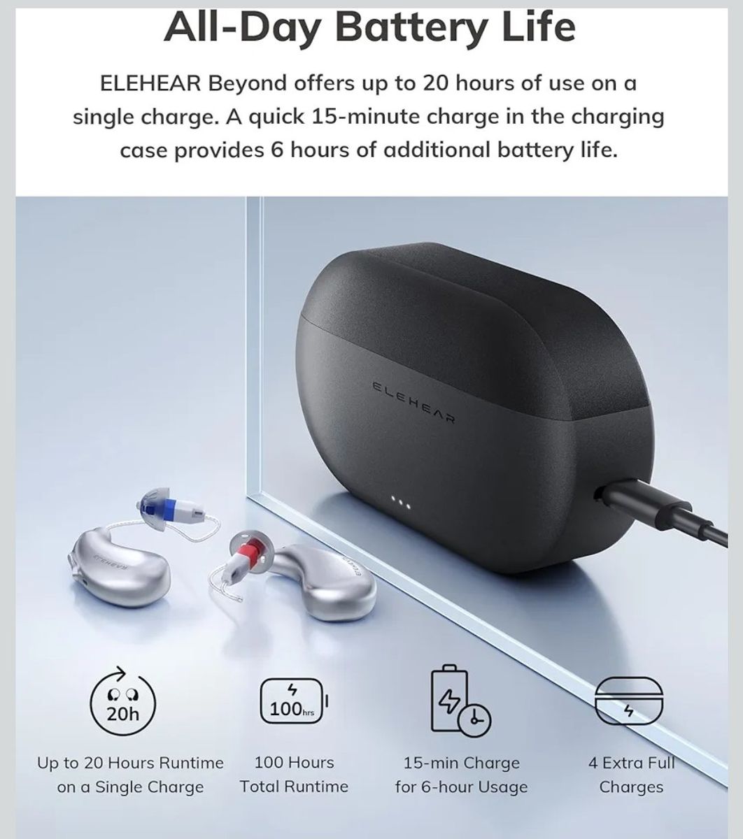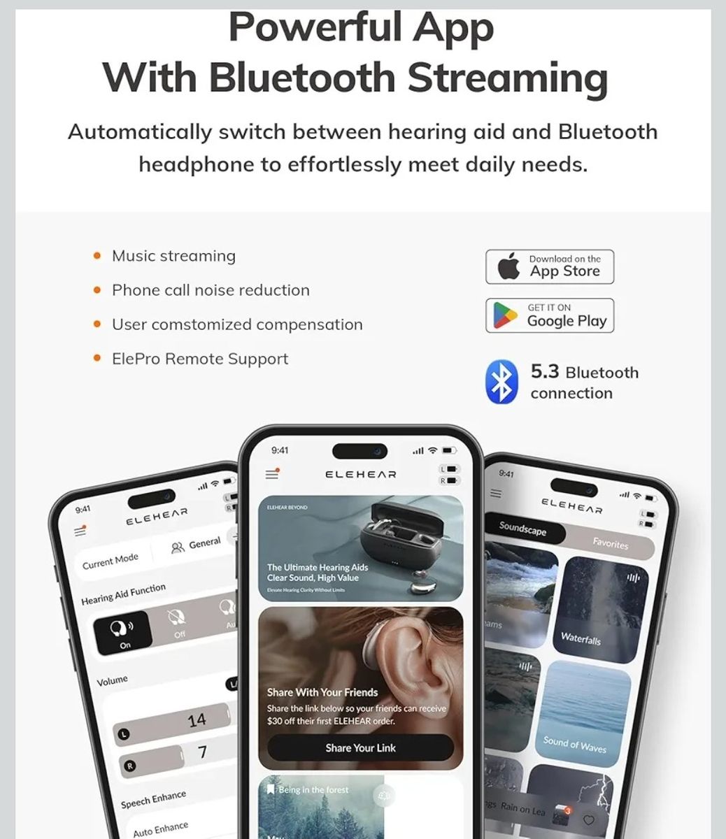 ELEHEAR-Beyond OTC Hearing Aids, AI Powered Speech Enhancement and Tinnitus Masking, Superior Sound Quality, Connectivity with iOS or Android Devices via Bluetooth 5.3, for Seniors and Adults Color: Silver Gray Size: Universal size