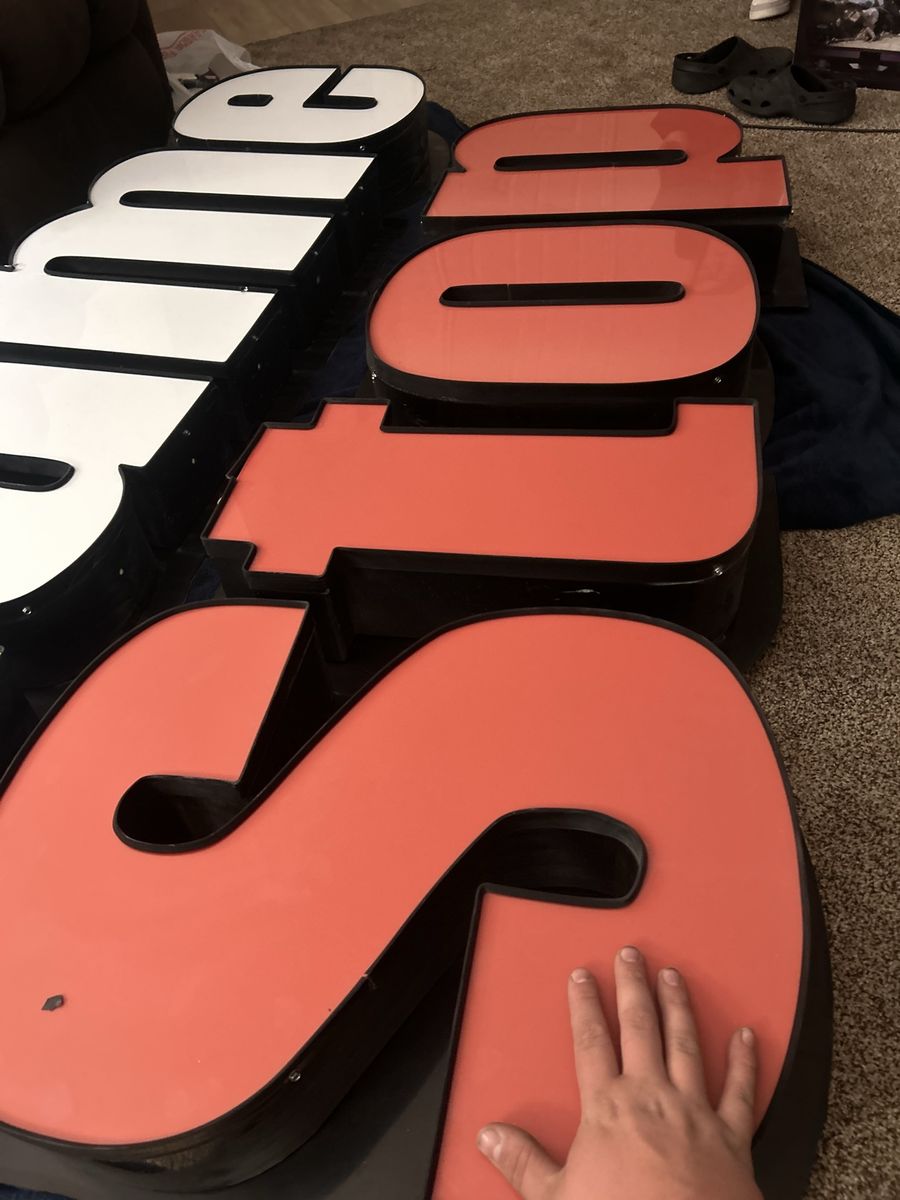Only selling because I don’t have the space for it right now. The sign comes in 2 separate pieces and they are both fairly light.