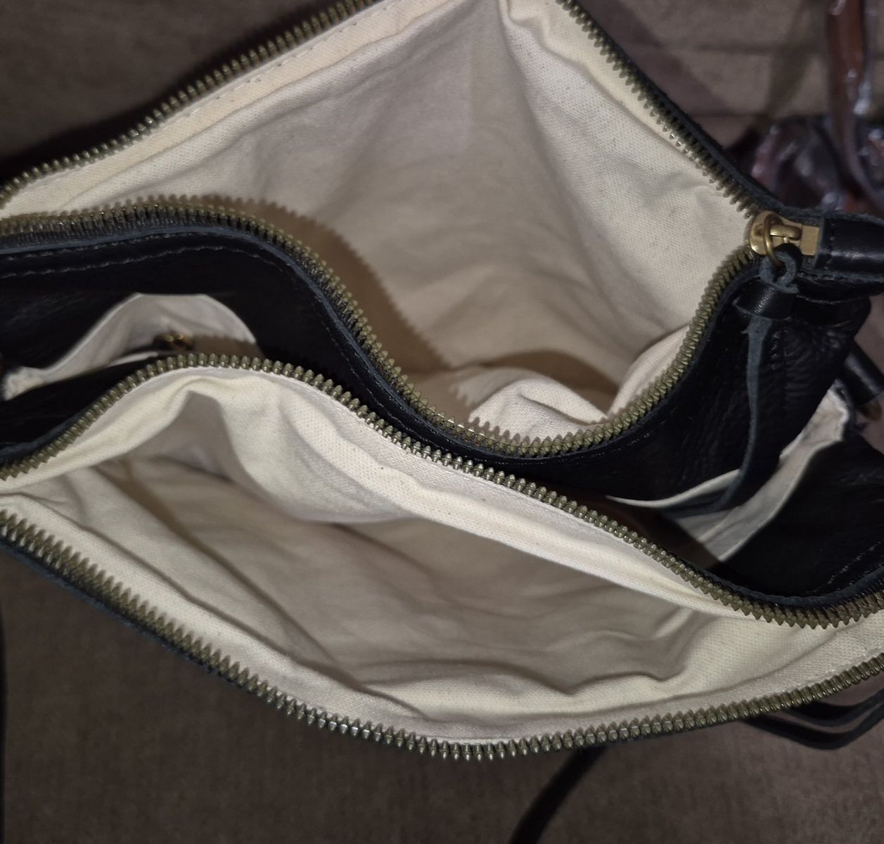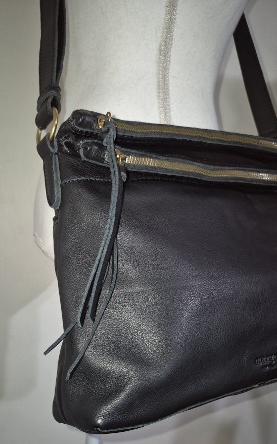 The Mickey Double Zip Crossbody is a truly versatile bag. An adaptable medium size, it provides plenty of storage and organization, with its two zipper flaps and numerous pockets inside. Rich, supple leather paired with gold hardware makes for an elegant day bag. Height: 10" Width: 12.5" Depth: 3.25" Shoulder Strap Drop: 26" at its longest 100% Genuine leather Gold finish hardware 1 center main entry with magnetic snap closure Extra-wide leather shoulder strap Cotton canvas lining 1 Exterior slip pocket 2 Zipper pockets on flaps 1 Interior zipper pocket 2 Interior slip pockets