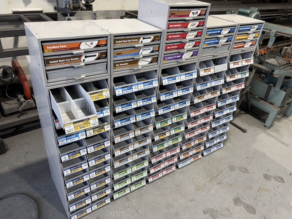 VenmoBolt organizer bins for sale. Same style as you would find at Ace Hardware. Some of the bigger bins have plastic dividers. Most of the smaller top drawer units still have the little cardboard box bins. I would like to sell as the whole lot but might be open to splitting it up.