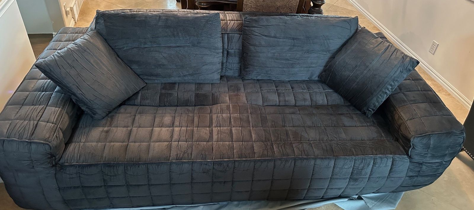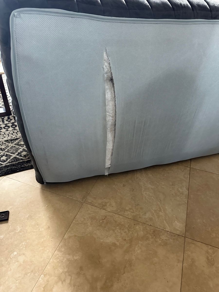 Recieved this couch from an pallet auction. The person who originally purchasd this couch did not reveiw insturction for opening and cut the bottom of the couch, and then returned it to the retailer.