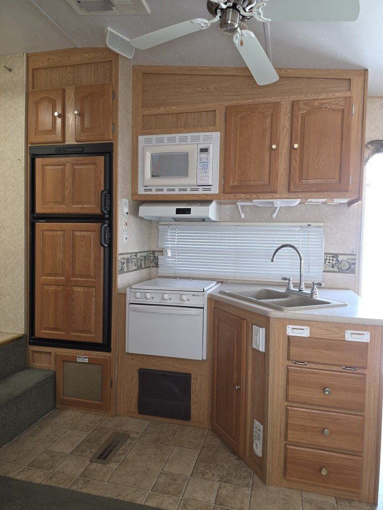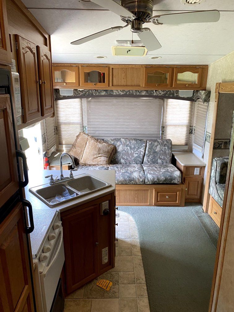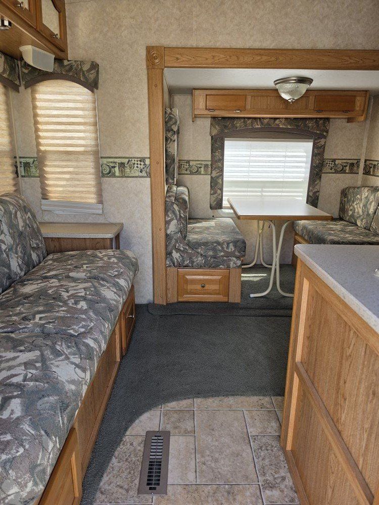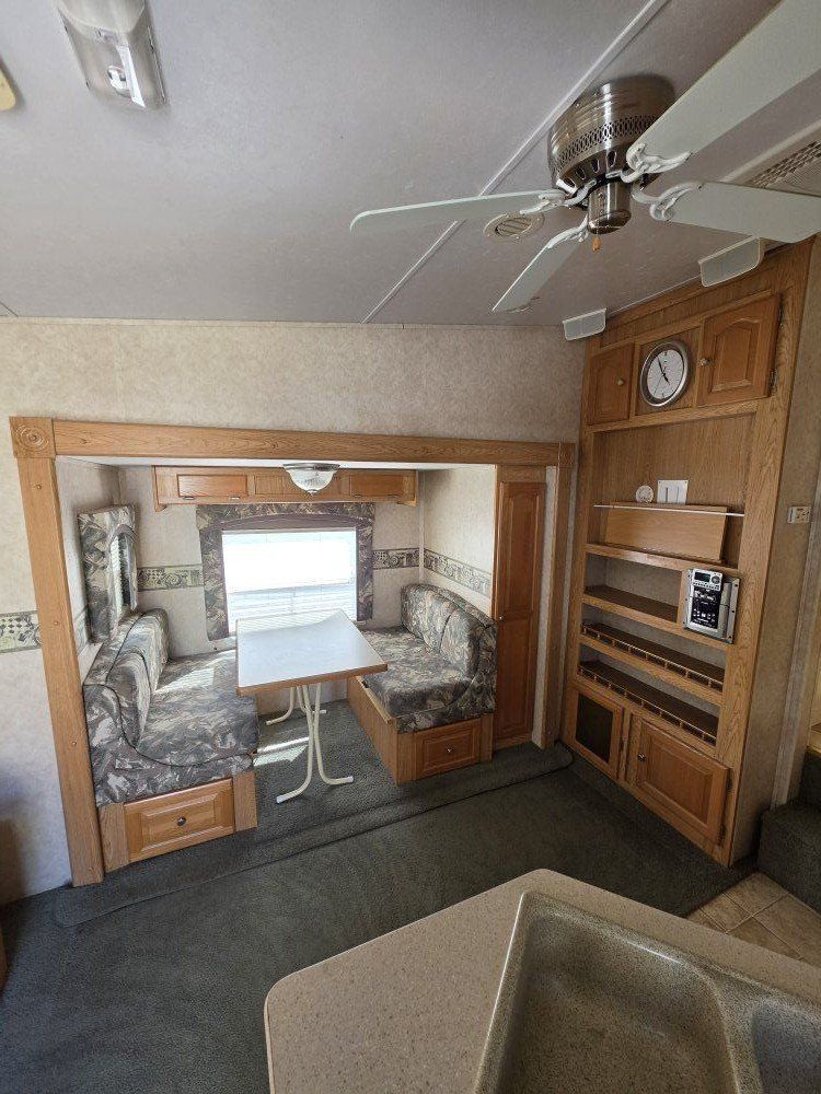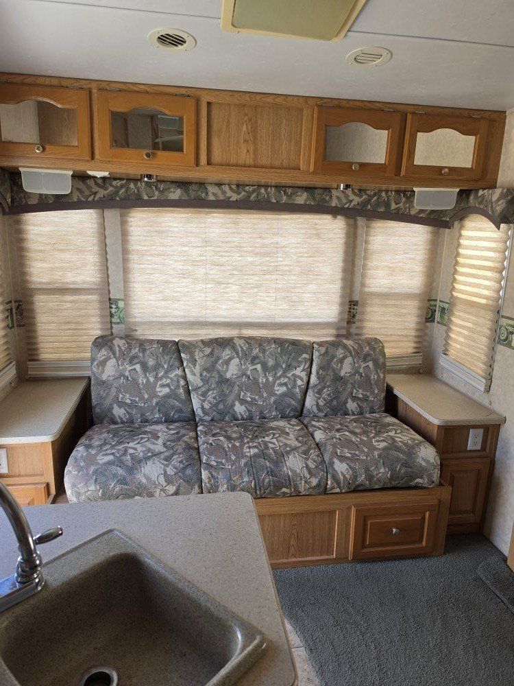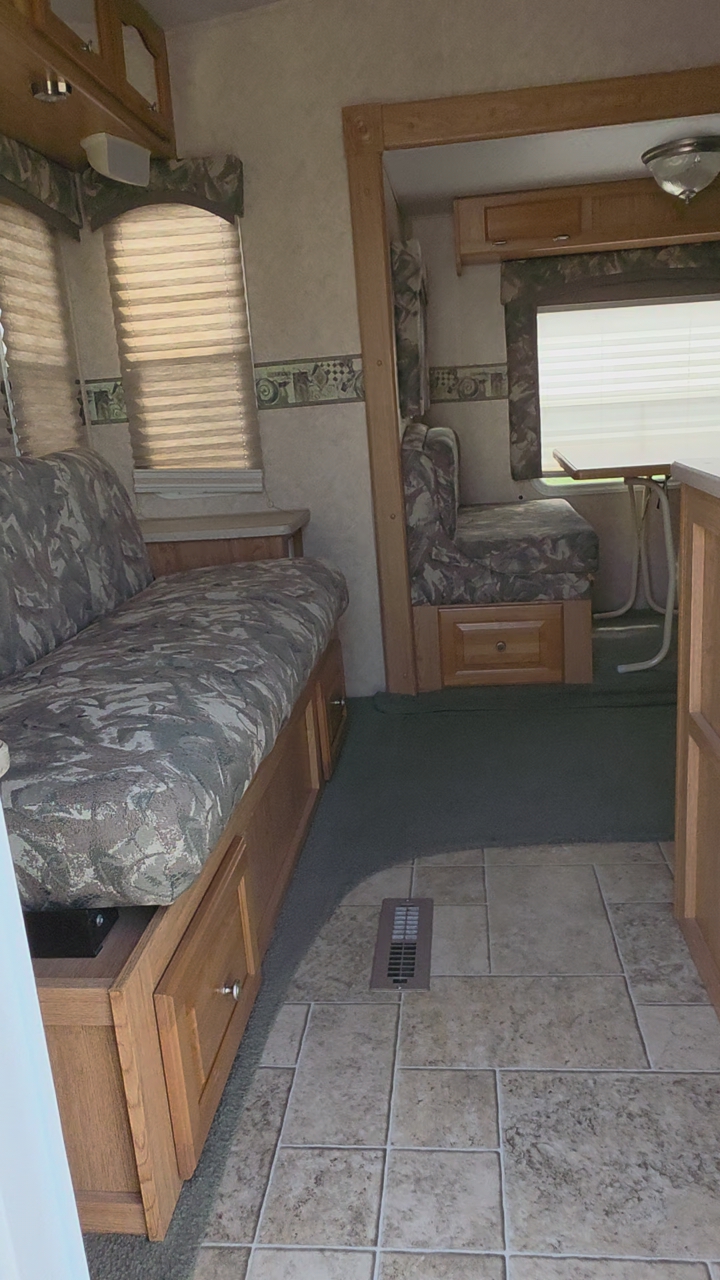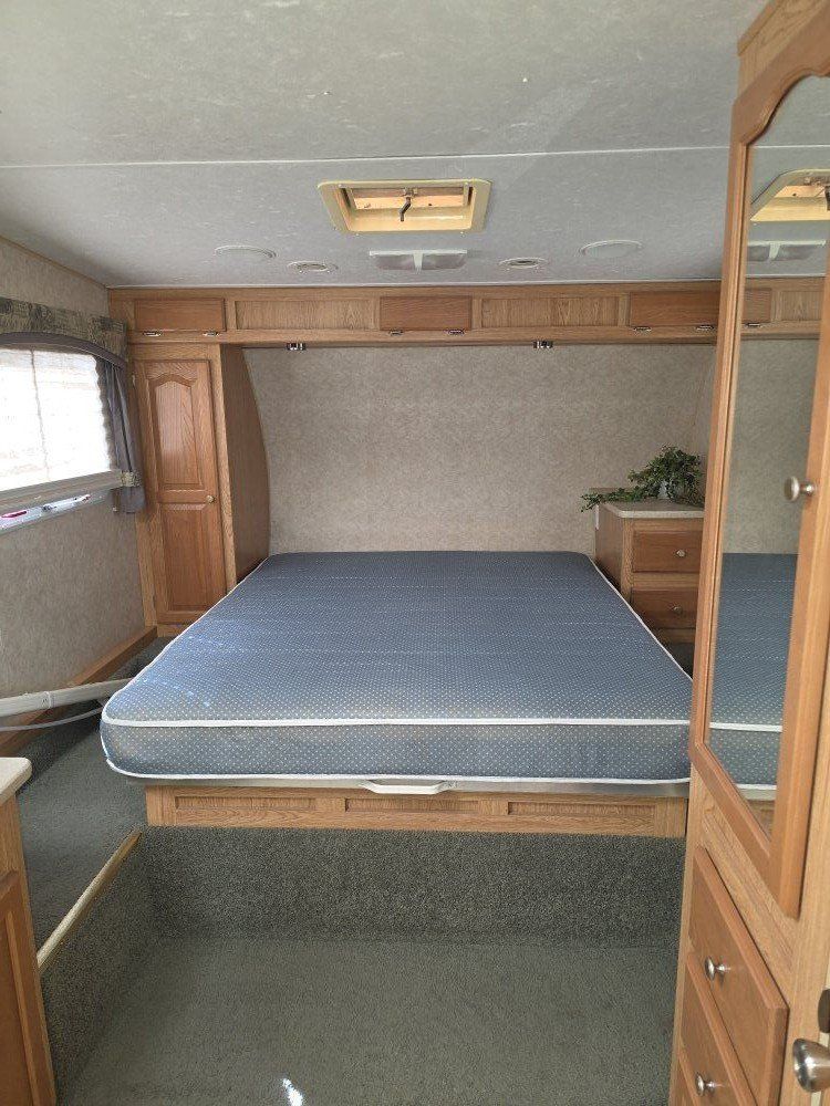 Electric front Jack's ( passenger side is brand new) Electric pop out heated queen mattress Anderson Hitch There is wallpaper peeling behind the sofa due to some water damage (after yesterday's rain storm. we found that it's coming in through the corner of the window) 7,000 OBO