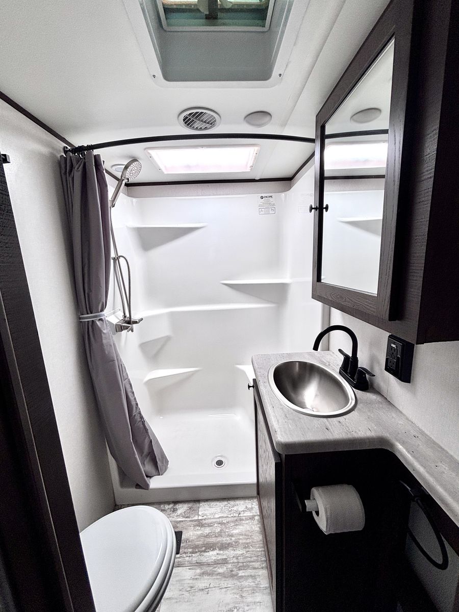 30 gallon onboard fuel, 102 gallon fresh water, 80 gallon black, 70 gallon grey