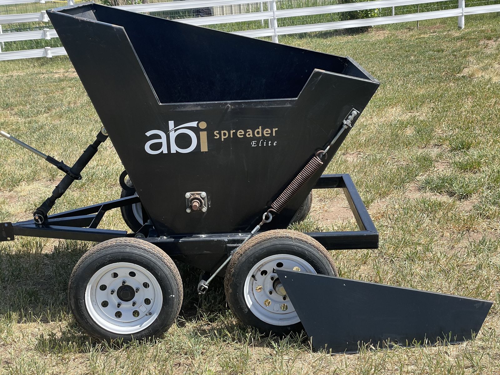 ZelleAwsome ABI ground driven manure spreader! Great for small to medium size ranches. Fully adjustable for towing & spreading. Top Load or side load. Stored inside. In great condition