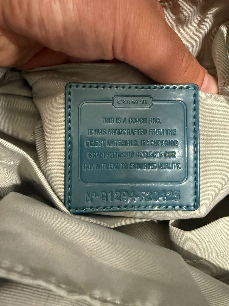 Used Coach teal signature-pattern tote/shoulder bag with handles and removable shoulder strap. Interior is lined and includes Coach creed patch. Normal light wear from use as shown. Selling as-is. Cash or Venmo accepted. Pickup in Lehi.